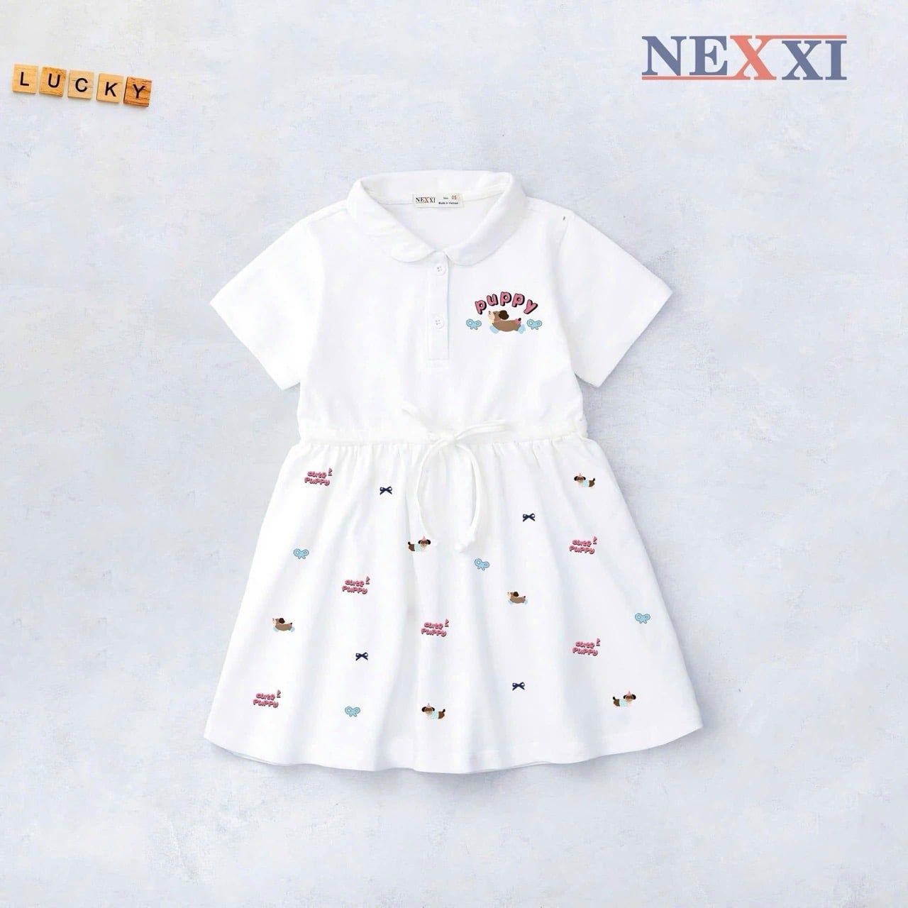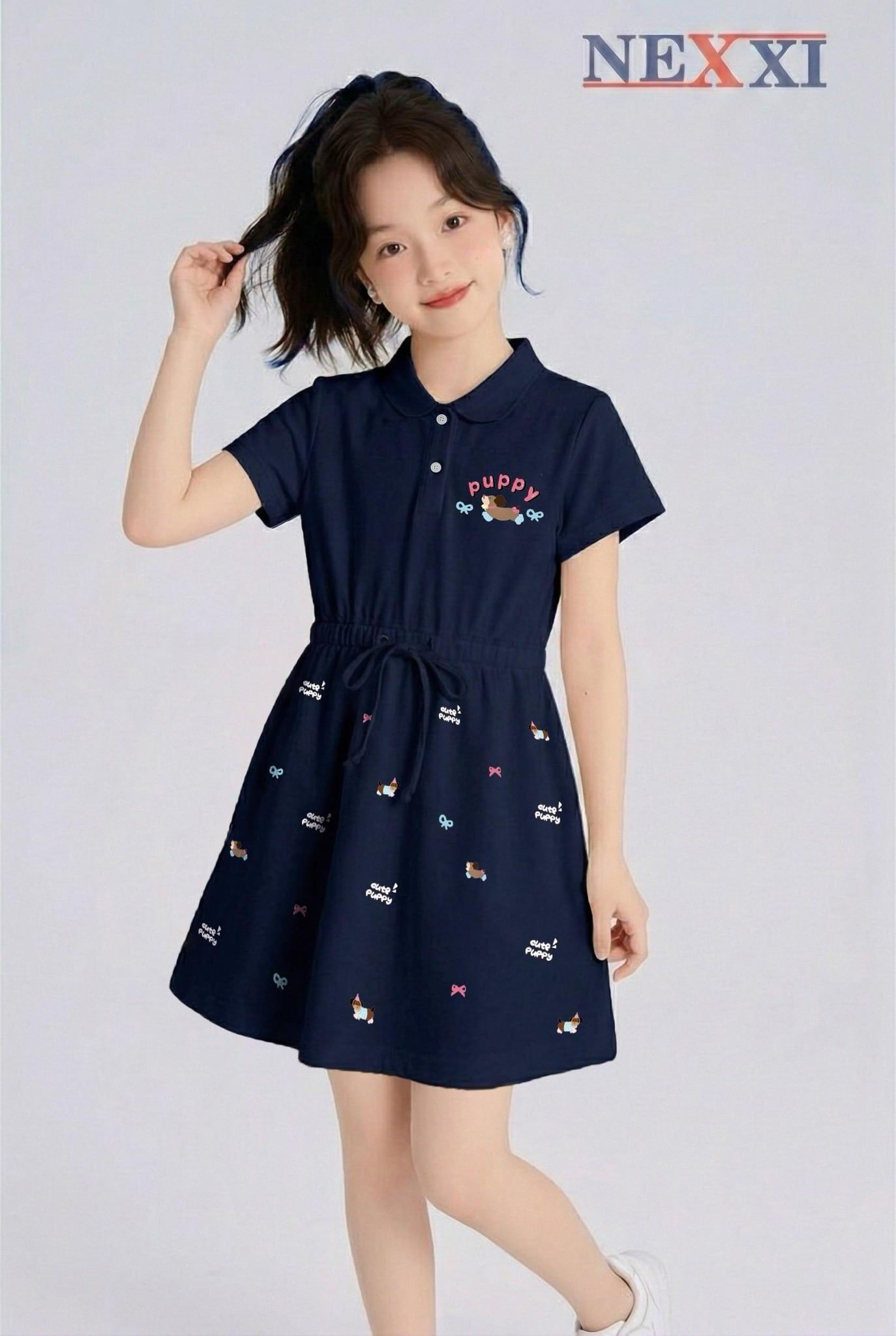 2509.81 - Váy thun Nexxi polo cá sấu rút eo in cún Puppy size 3-8y