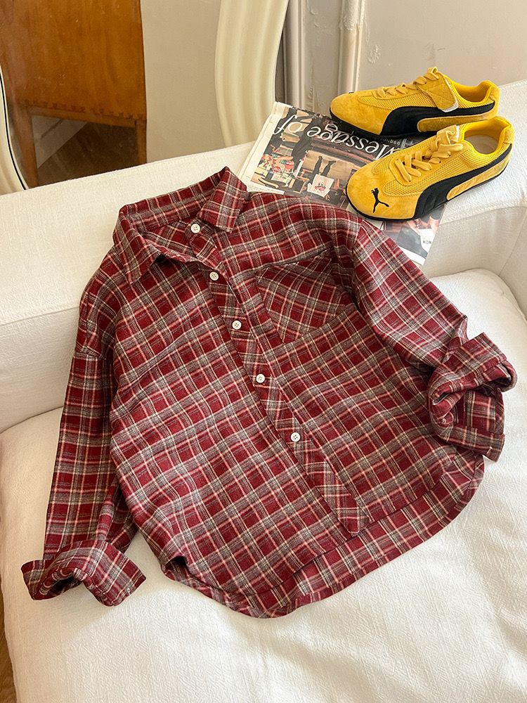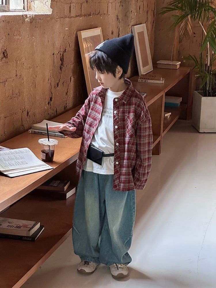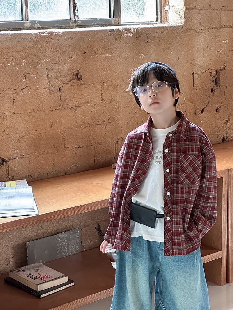 25F136 - Áo sơ mi AMBB vải dạ mềm kẻ nâu đỏ bé trai size 110-170