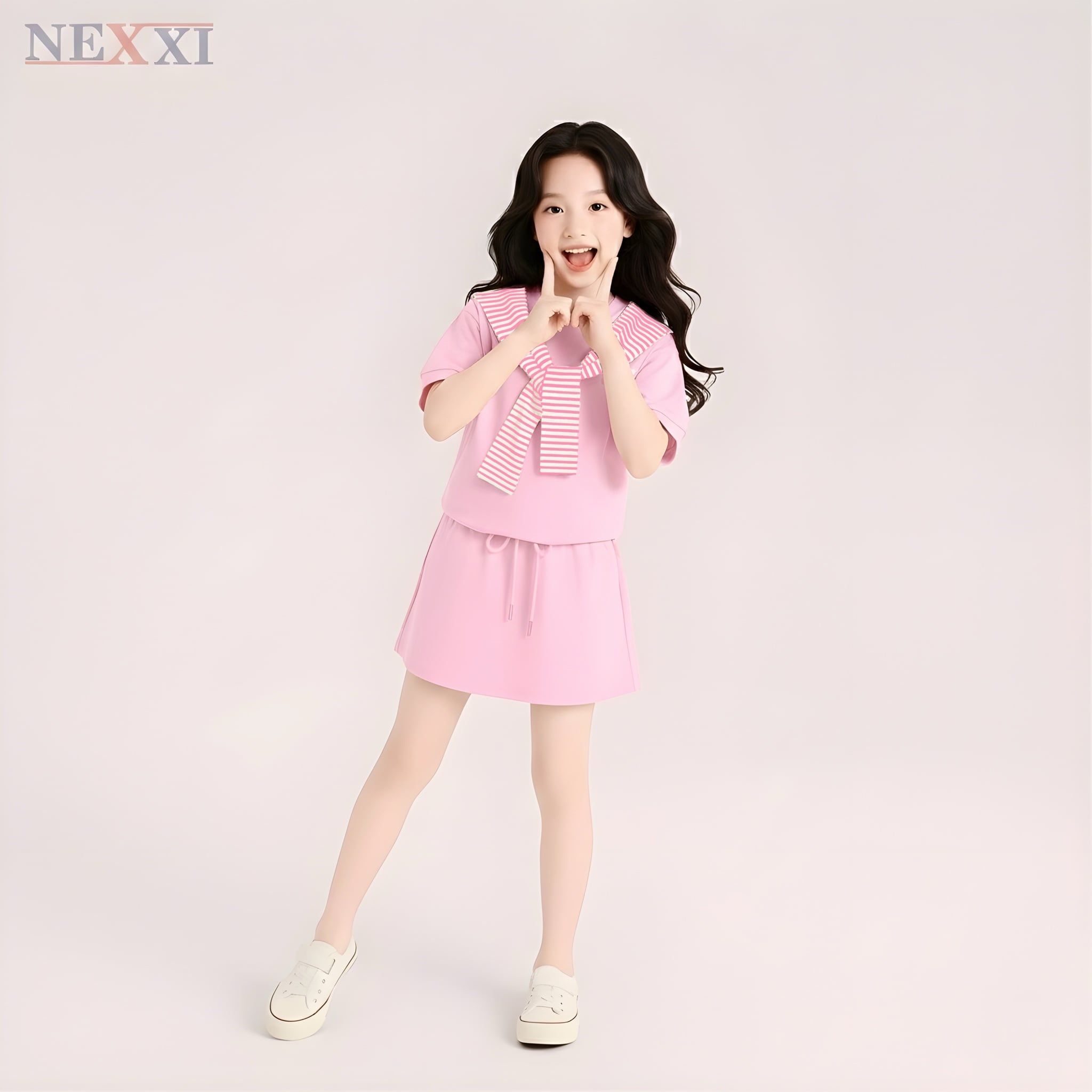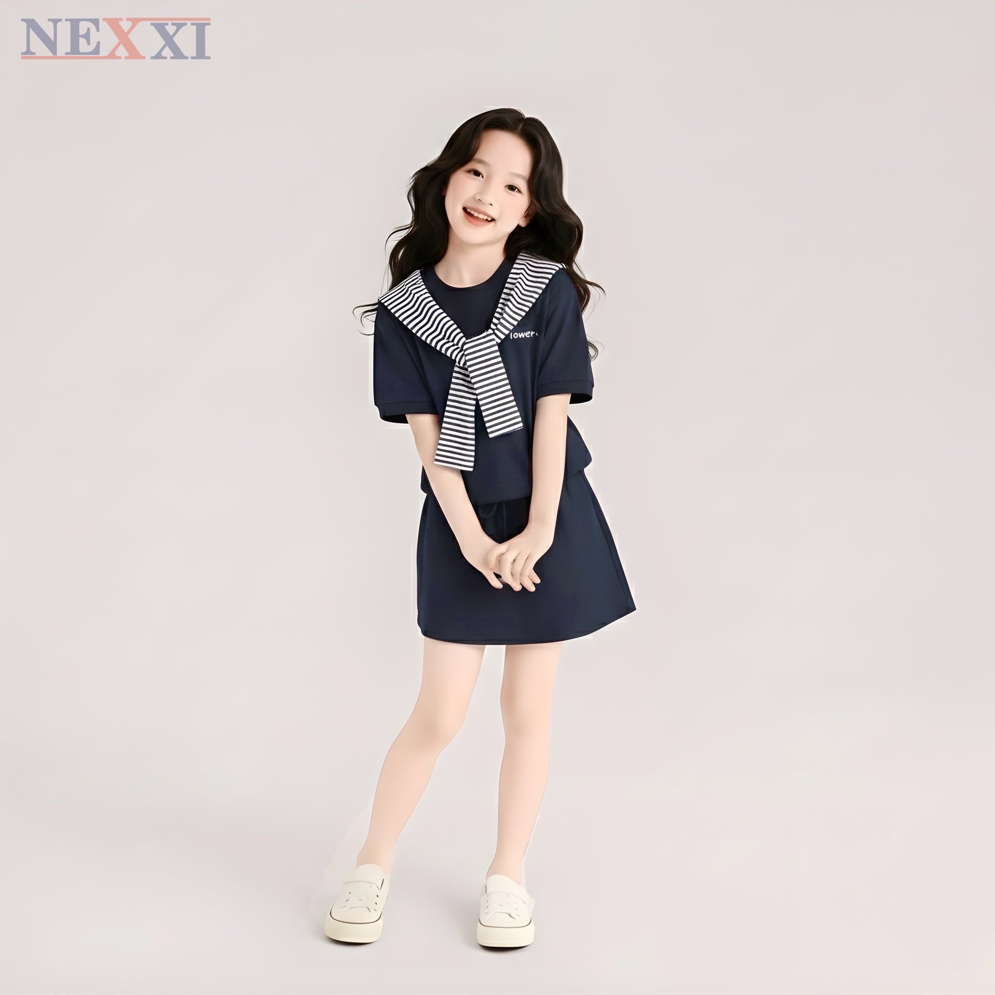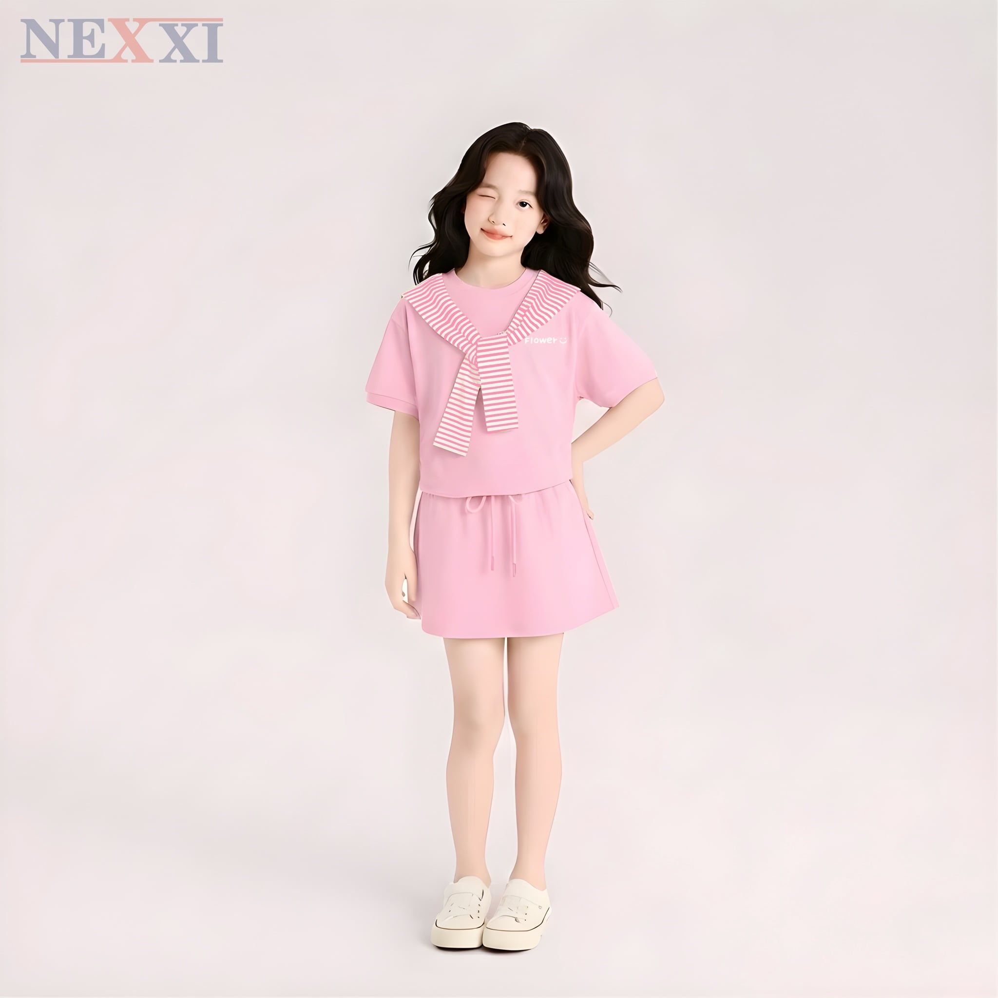 2604.8 - Set bộ Nexxi váy thun dây vai sọc bé gái size 3-14y