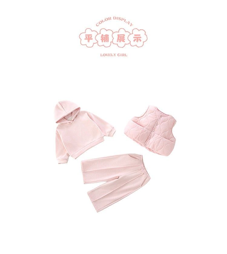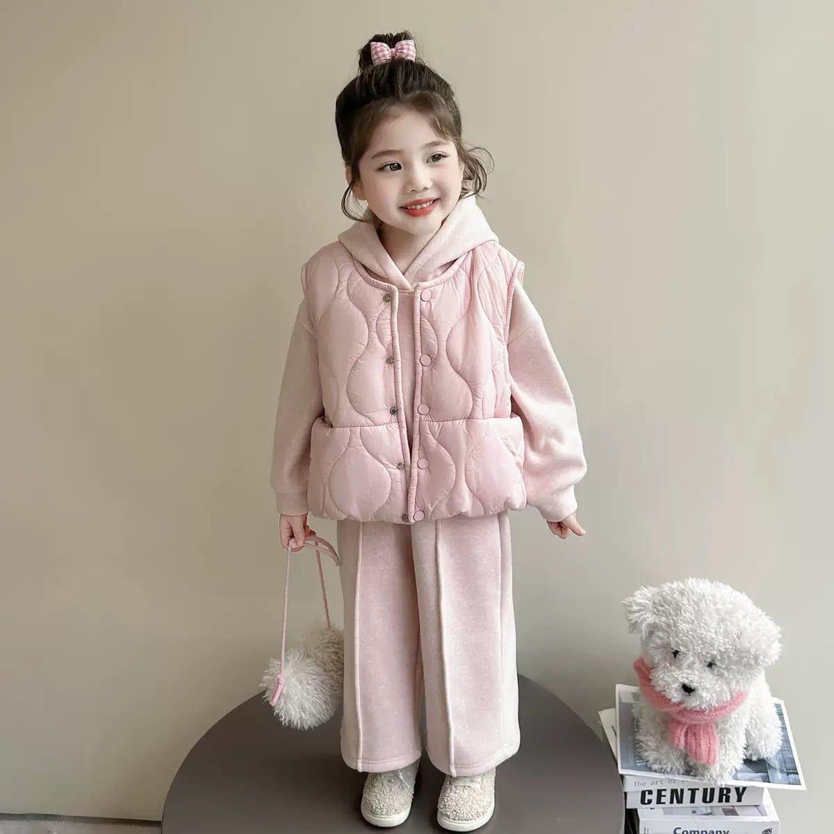 51056 - Set 3ct Roubao bộ nỉ hoodie + gile phao bé gái size 90-130