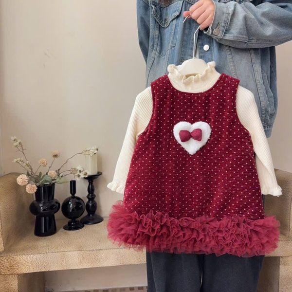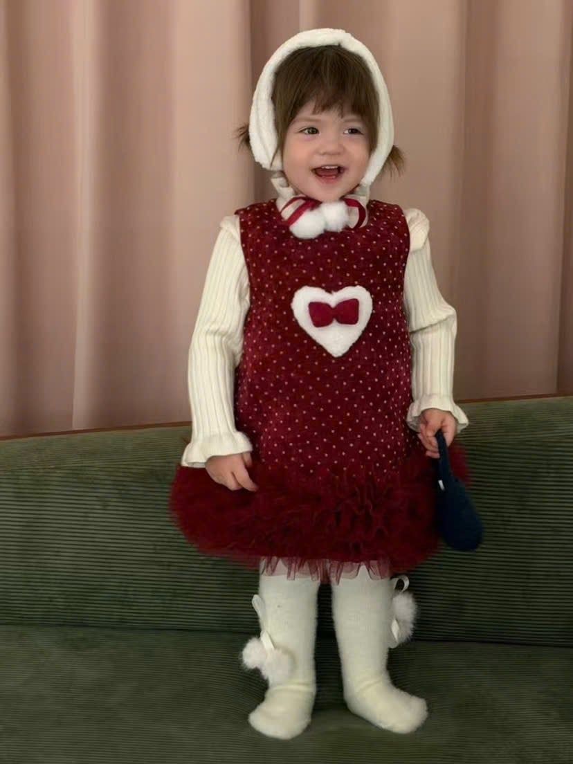 51320 - Set Roubao áo len tăm + váy nhung đỏ chấm bi bèo chân size 90-130