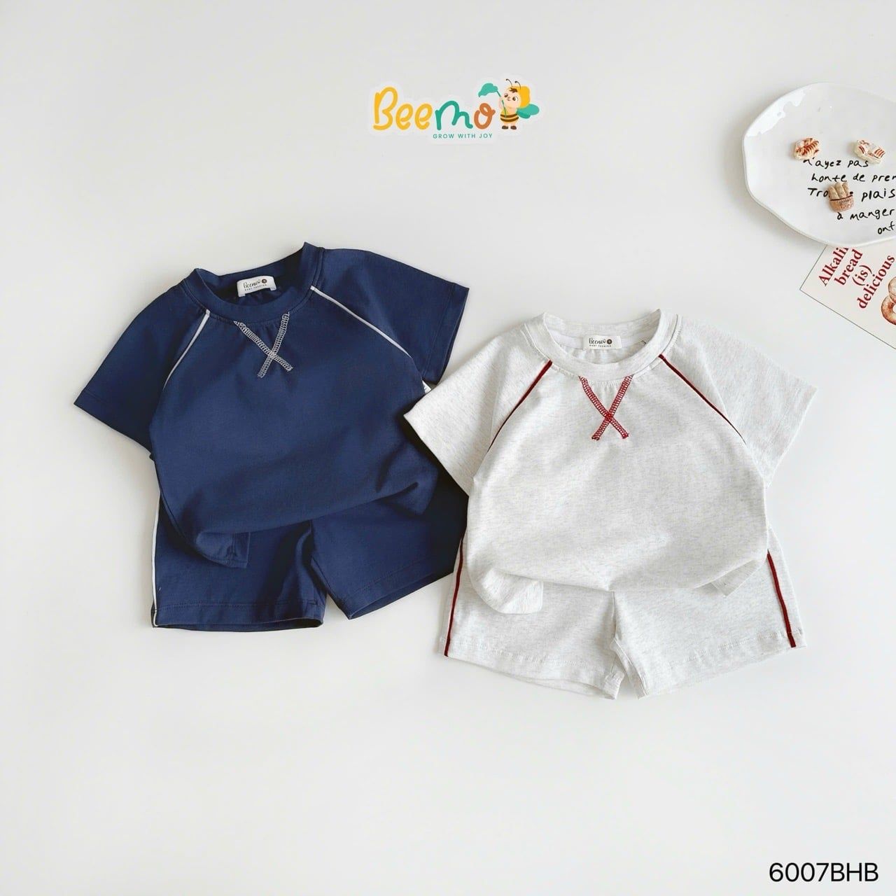 6007BHB - Bộ cotton phối lé Beemo 2 màu cho bé size 6-10y