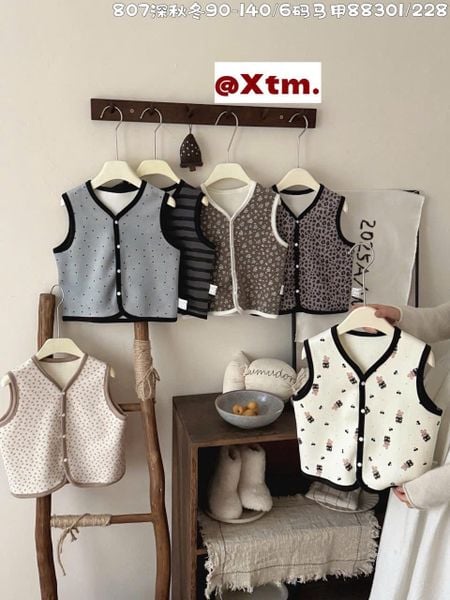 88301 - Áo gile nỉ LNX nhiều hình cho bé gái size 90 - 140
