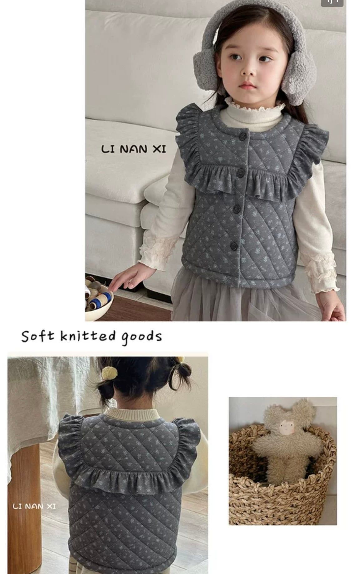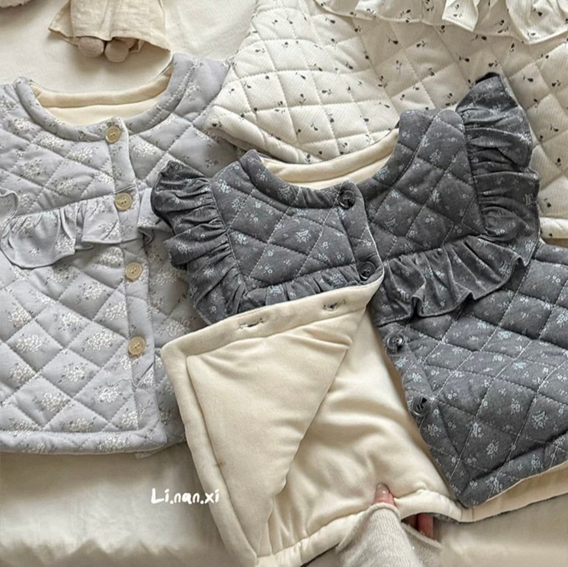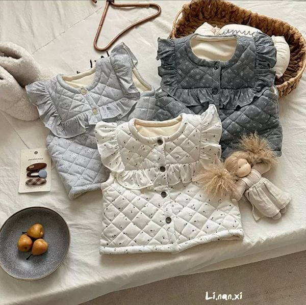 88330 - Áo gile lót nỉ LNX bèo vai ngực 2 màu Bé Gái size 90 - 140