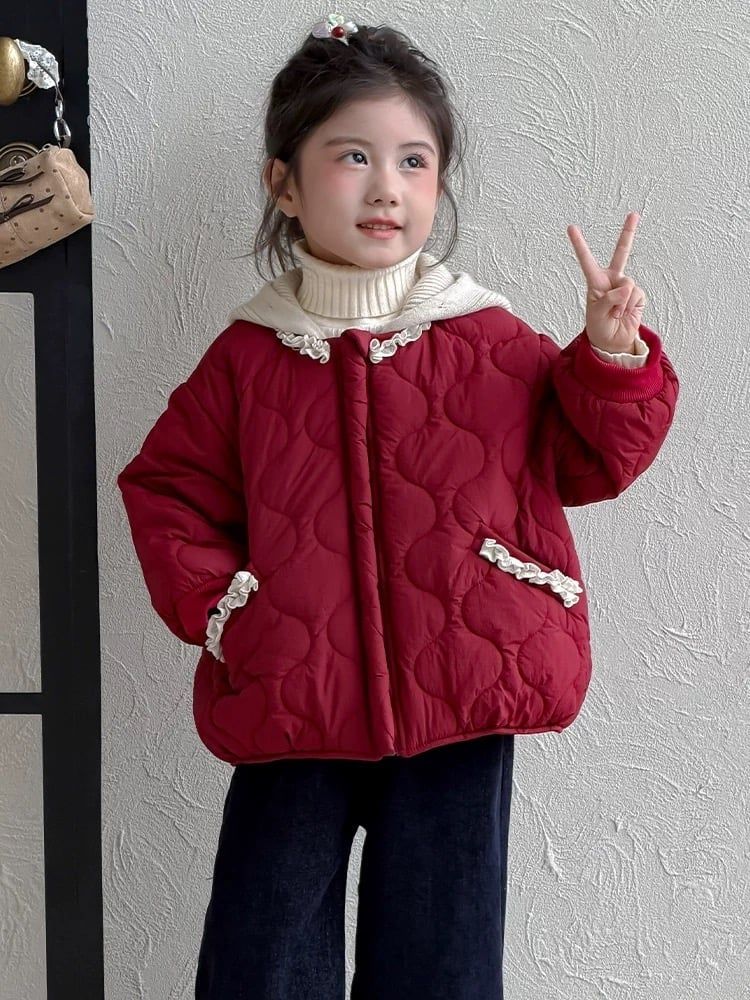 9565 - Áo khoác phao lót lông siêu nhẹ 2 màu đỏ/navy cho bé gái size 90-130