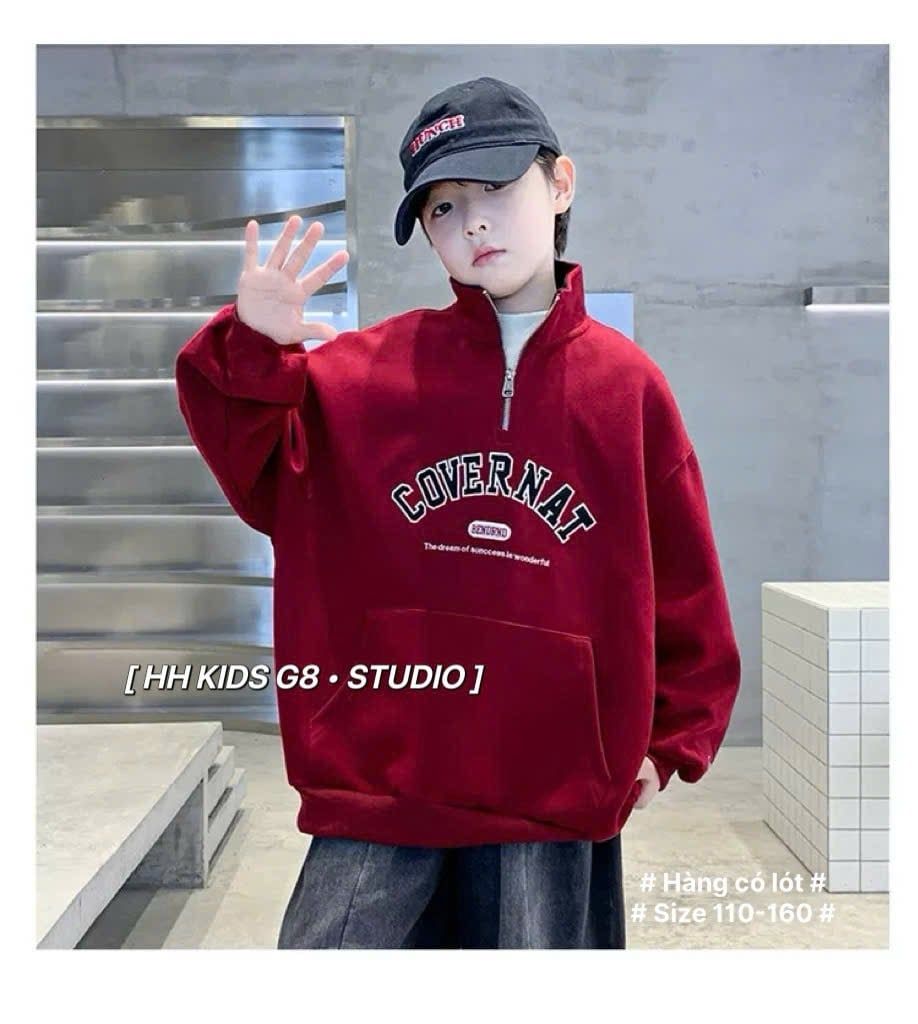 99616 - Áo nỉ cổ trụ Convena 2 màu đỏ/navy cho bé size 110-160