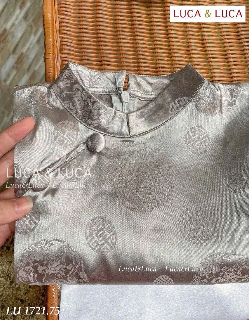 AD03 - Áo dài Luca & Luca màu ghi + quần trắng cho bé trai size 2-12y