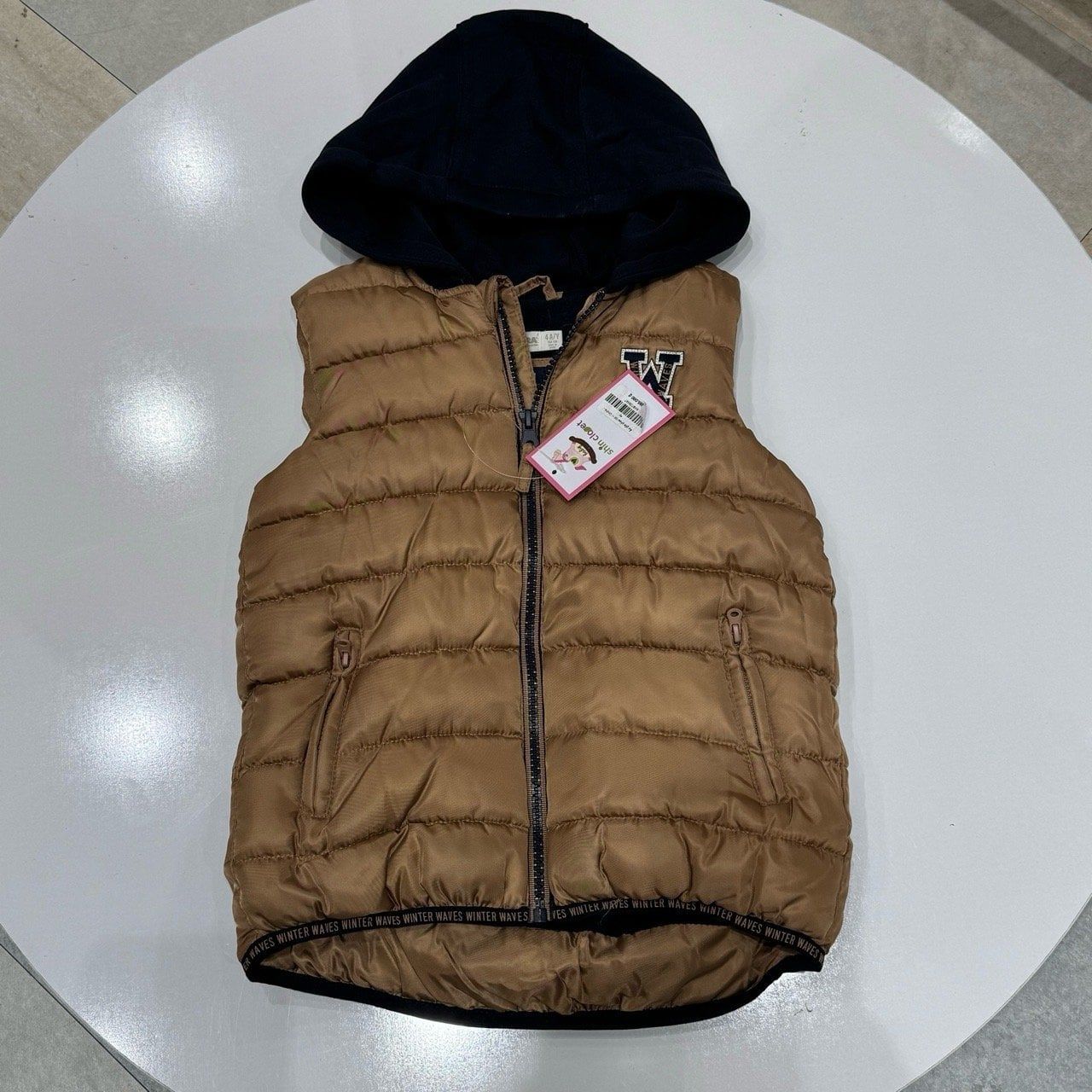 AKBT48 - Áo gile phao lót nỉ Orchestra màu nâu W mũ nỉ size 3 - 14y
