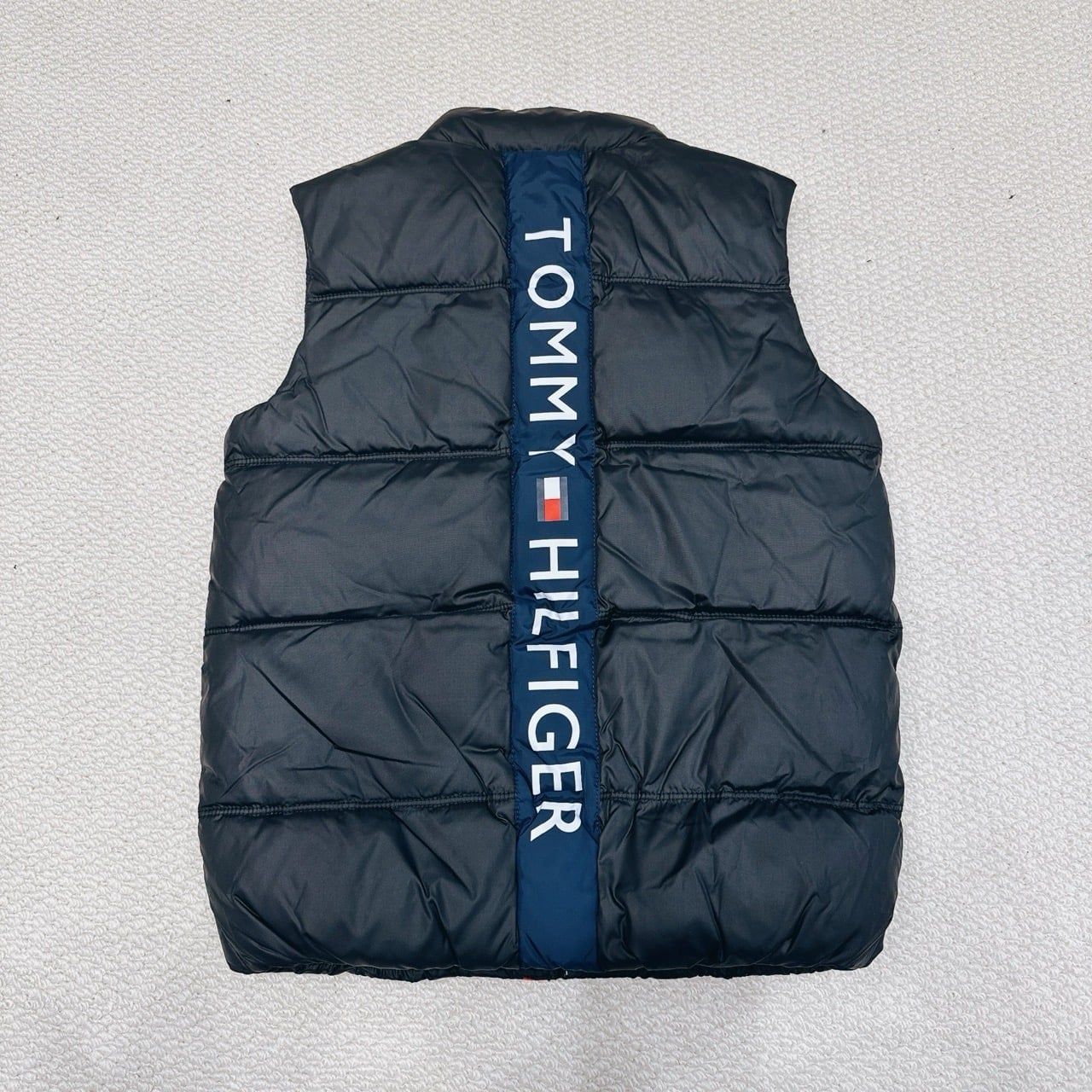 AKBT28 - Áo gile phao màu đen chữ lưng cho bé trai size 8-14y