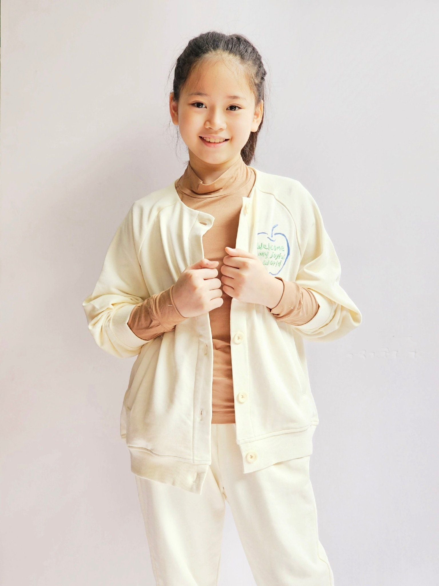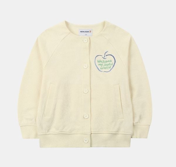 AKBT65 - Áo khoác Cardigan nỉ da cá trắng kem ngực in hình táo size 110 - 155