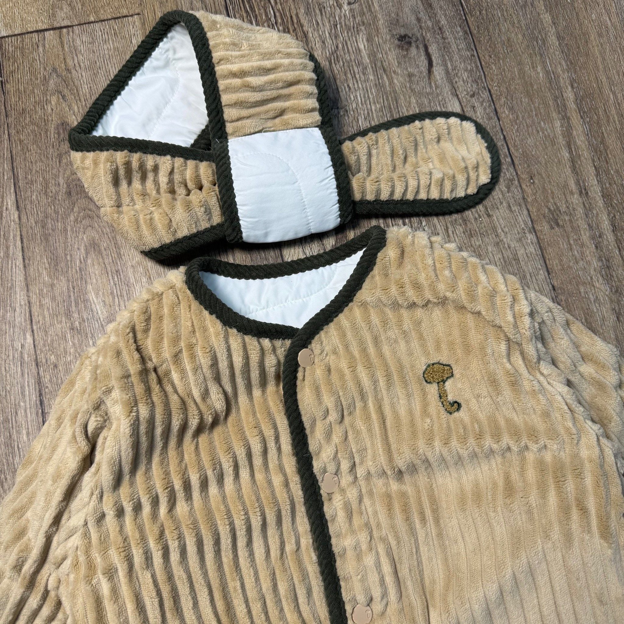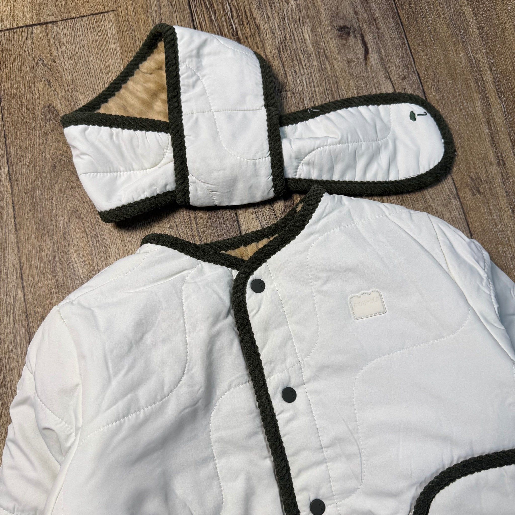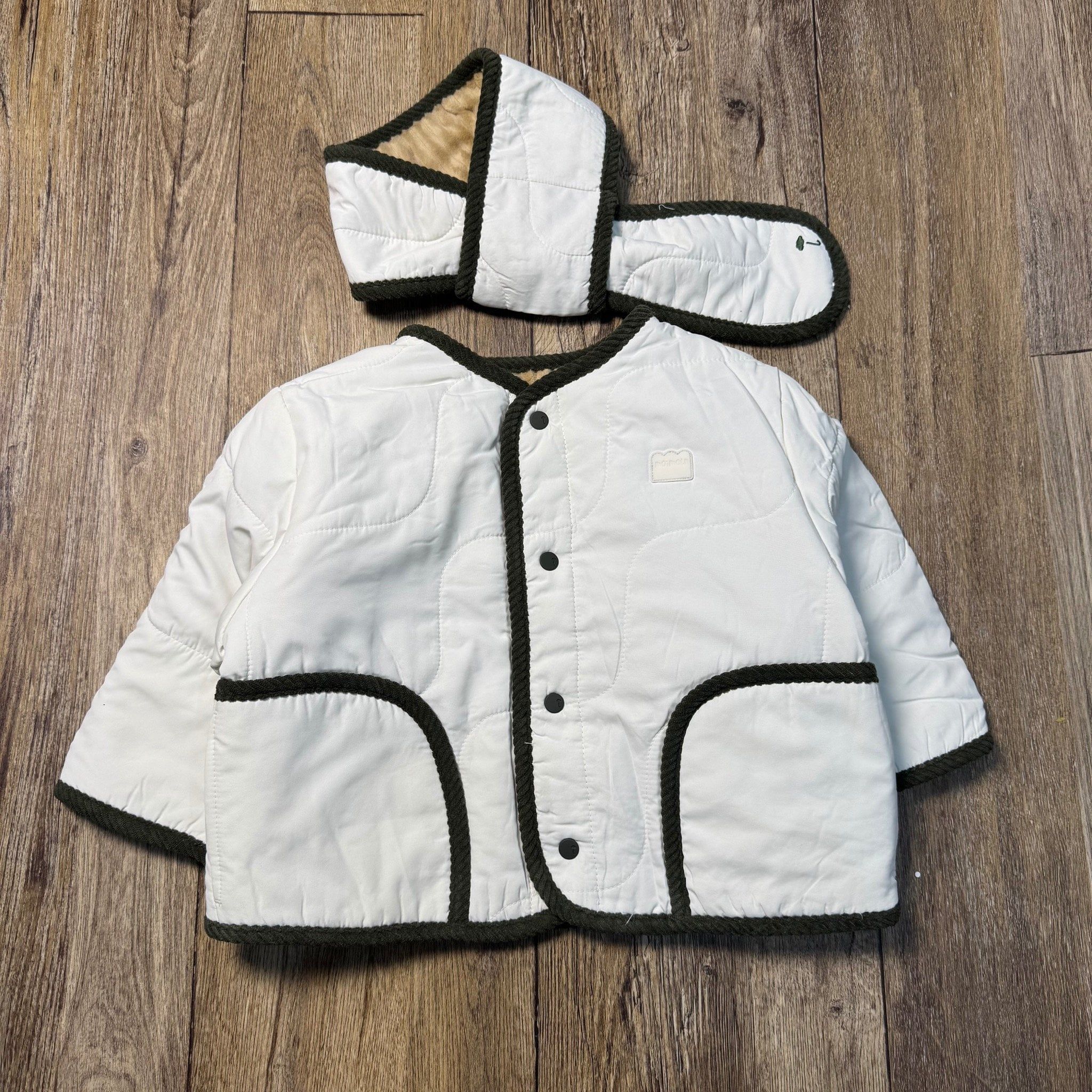 AK45 - Áo khoác MM trắng ngà lót lông kèm khăn mặc 2 mặt cho bé size 90-120