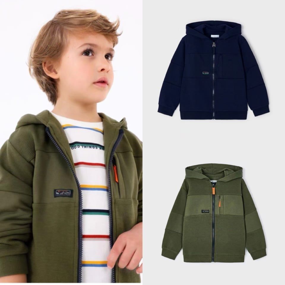 AKBT61 - Áo khoác nỉ có mũ 2 màu trơn logo núi size 2 - 9y