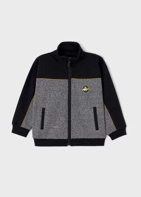 AKBT59 - Áo khoác nỉ màu ghi muối tiêu phối đen in ngực hình núi size 4 - 8y