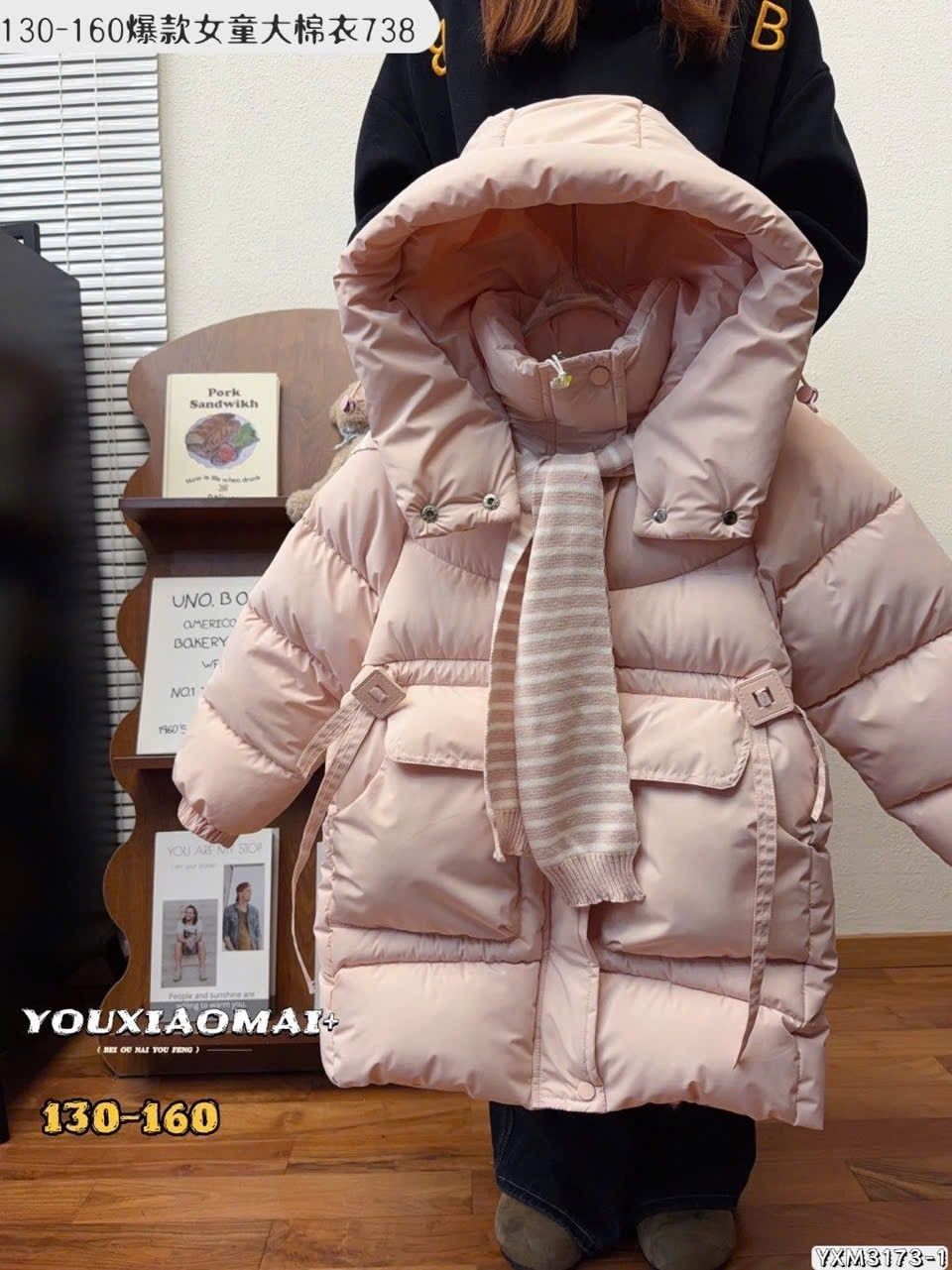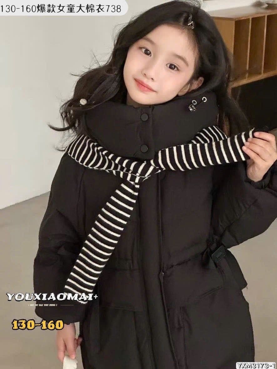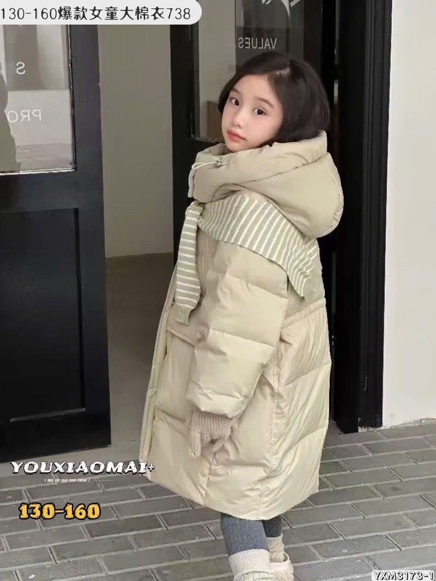AK11 - Áo khoác phao dáng dài lót nỉ kèm khăn nhiều màu cho bé size 130-160