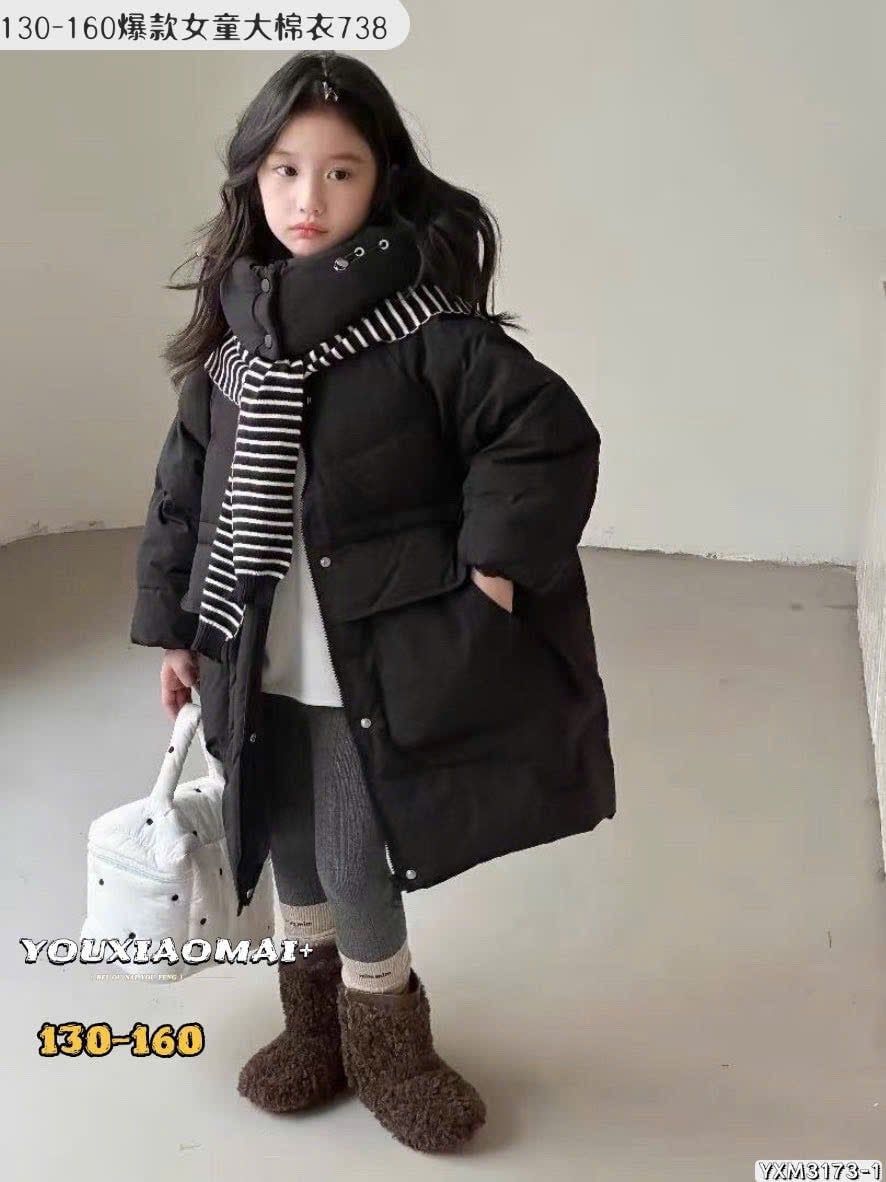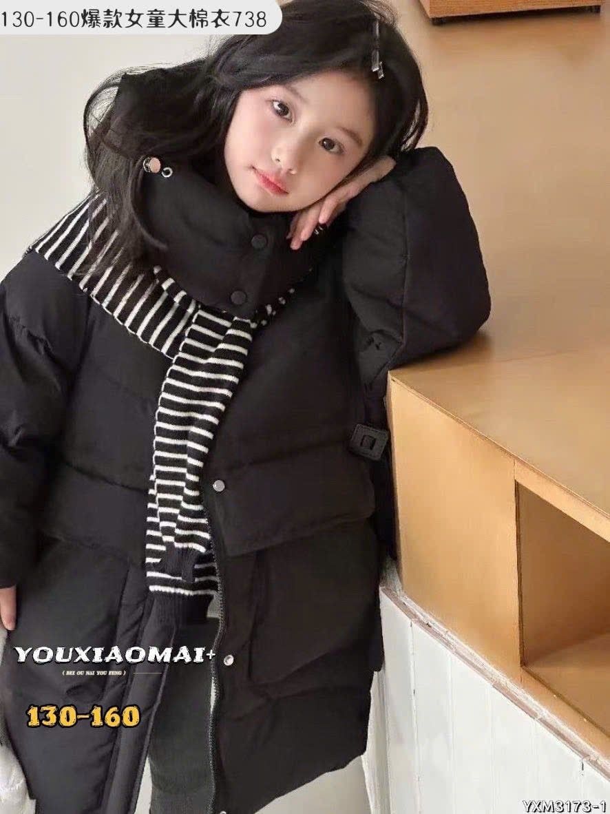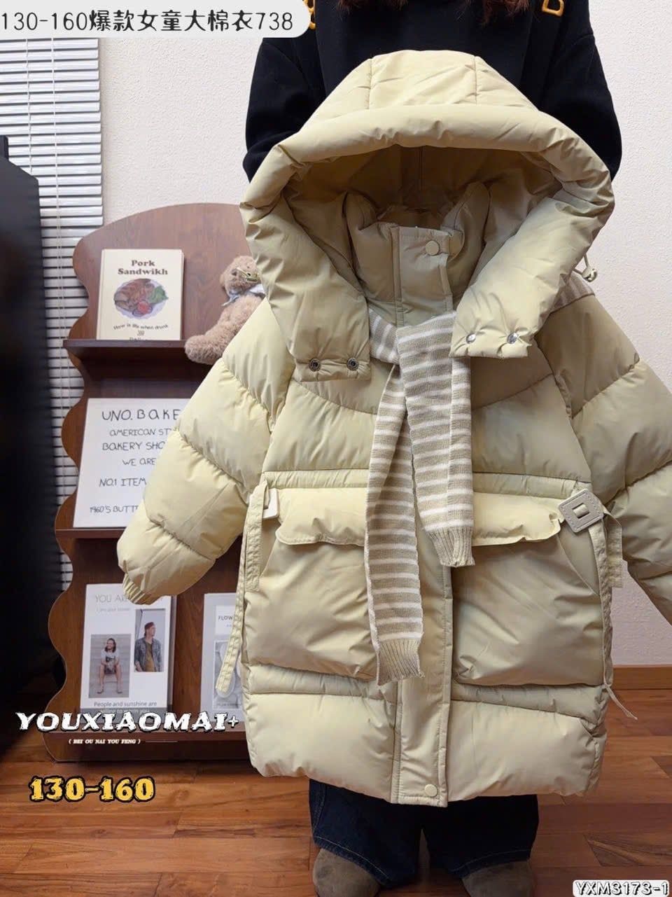 AK11 - Áo khoác phao dáng dài lót nỉ kèm khăn nhiều màu cho bé size 130-160