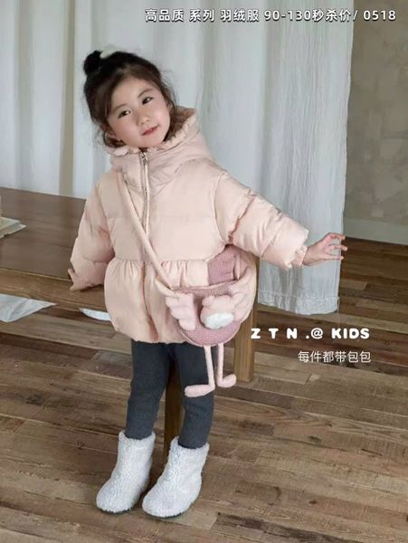 Áo khoác phao lông vũ Enenyu Kids kèm balo cho bé gái, áo dòng nhẹ tênh mà vẫn siêu ấm ạ.
