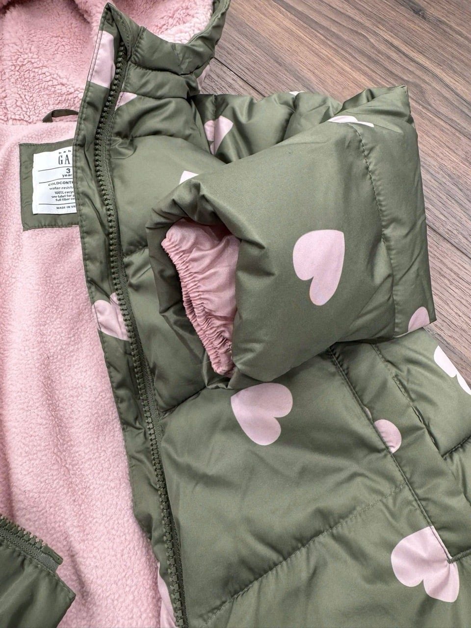 AK40 - Áo khoác phao lót nỉ Baby 2 màu hồng, rêu bé gái size 1-5y