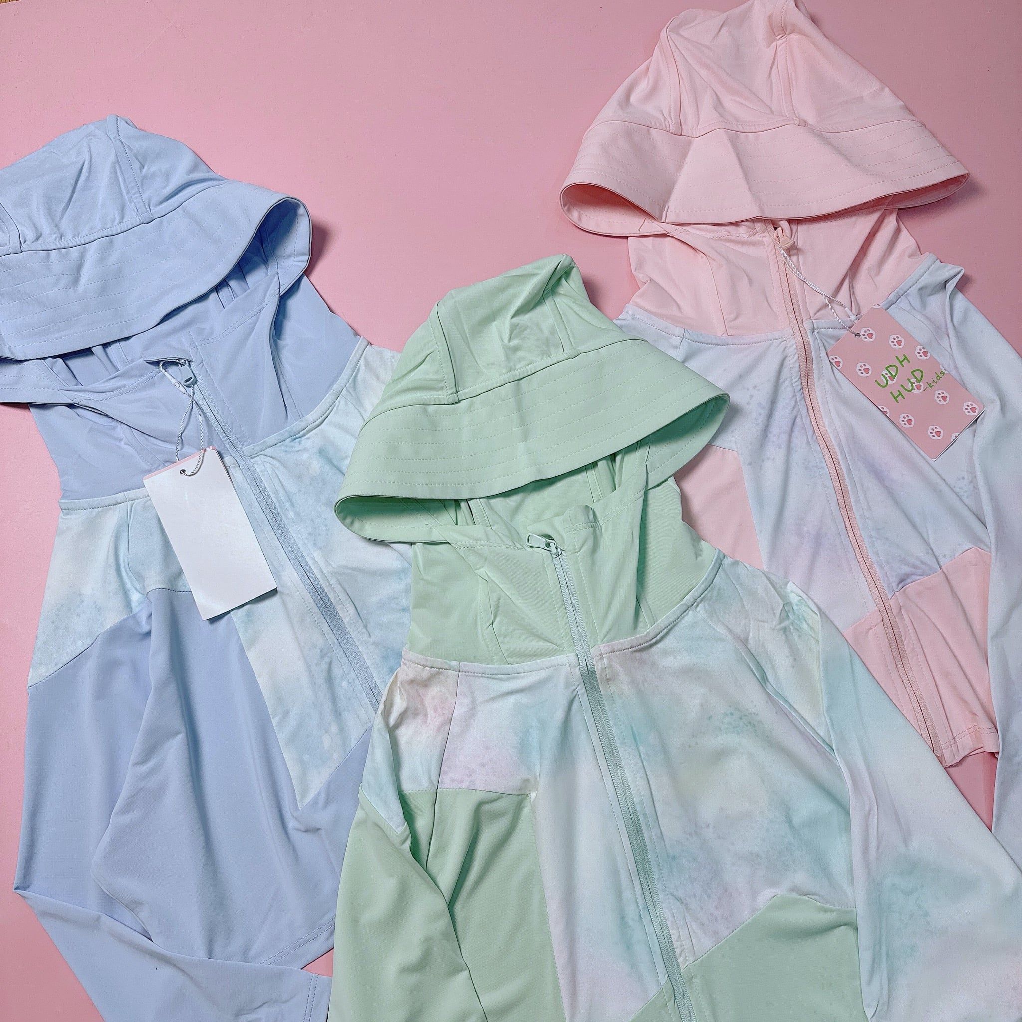 ACN01 - Áo khoác UDH HUD chống nắng vải thun lạnh +50 UPF loang nhiều màu cho bé size 110-160