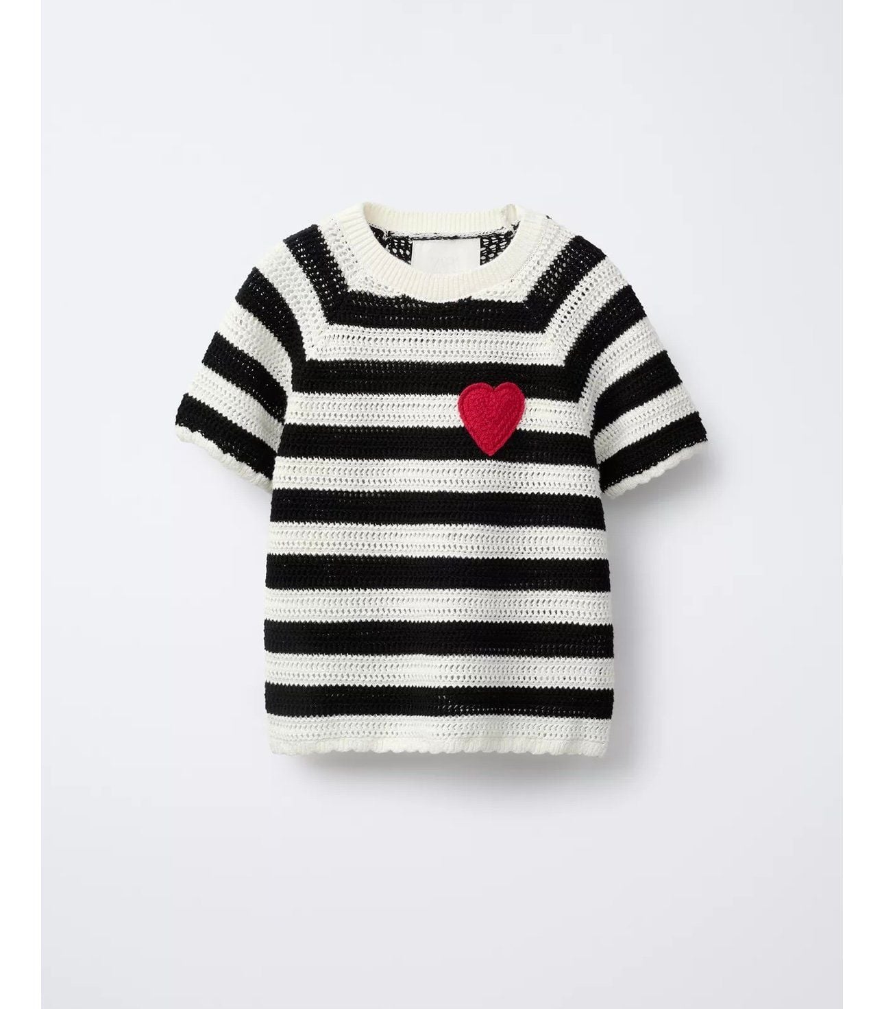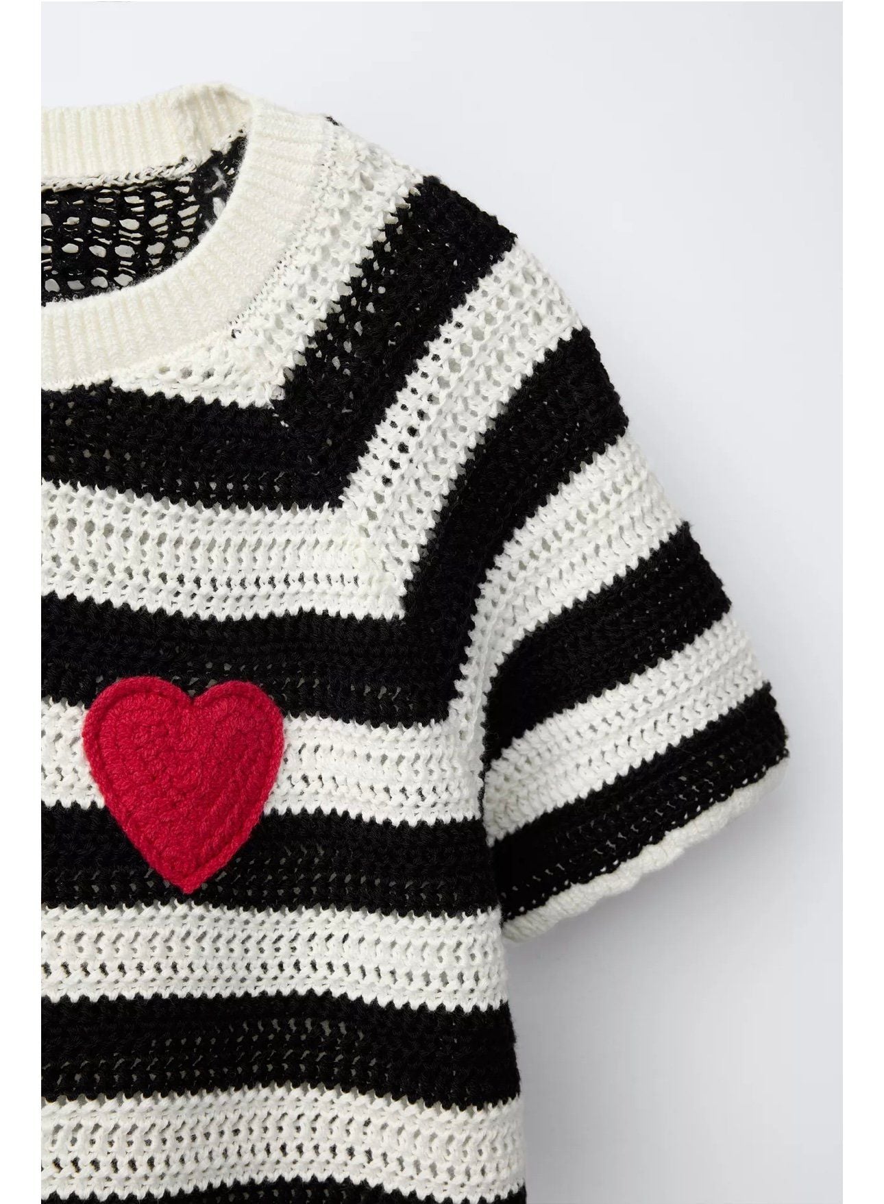 ABG18 - Áo len dệt kẻ ngang trắng đen ngực thêu tim đỏ size 6 - 14y