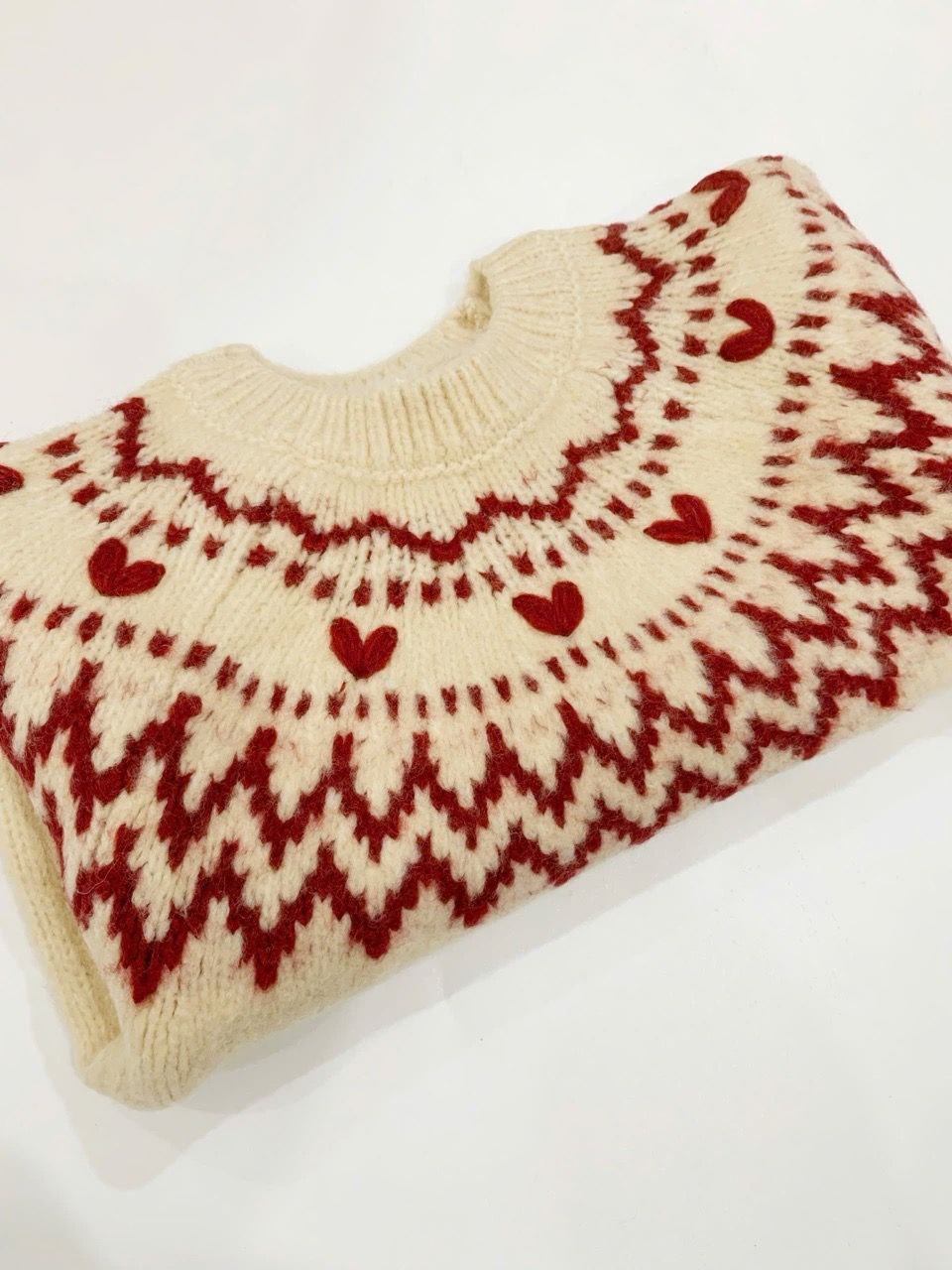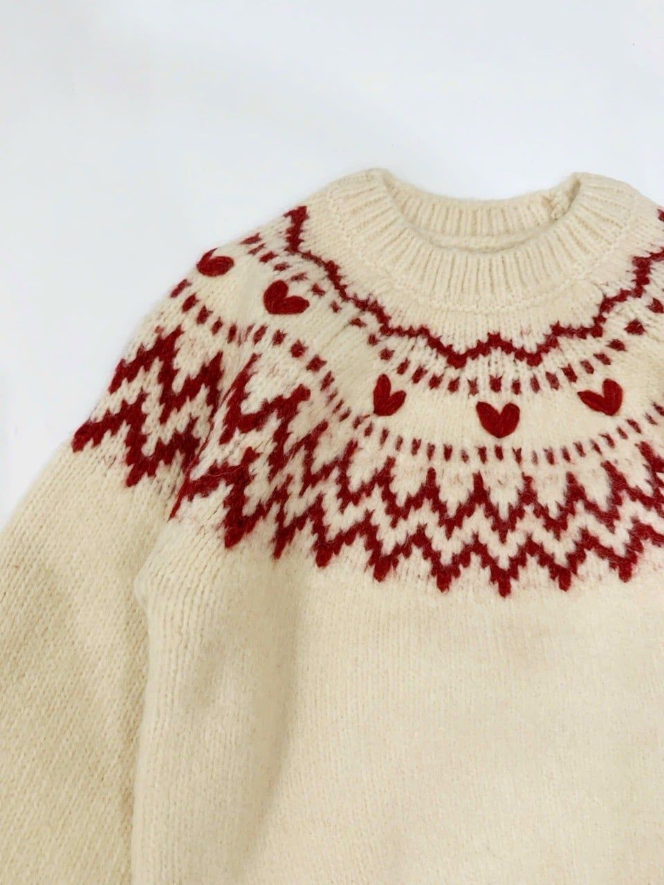ALBG07 - Áo len màu be hoạ tiết thổ cẩm đỏ bé gái size 1-6y