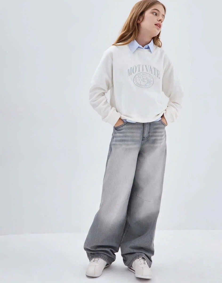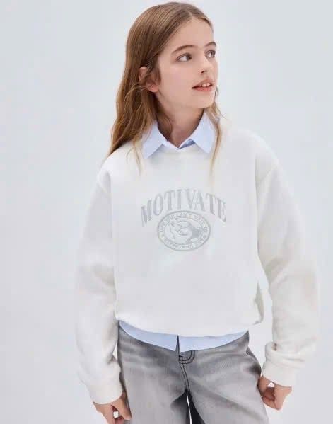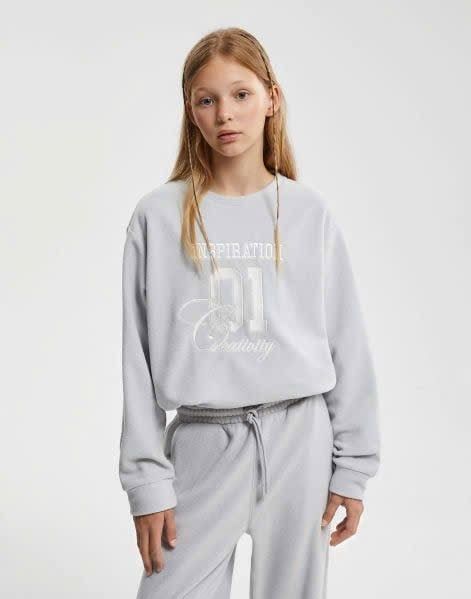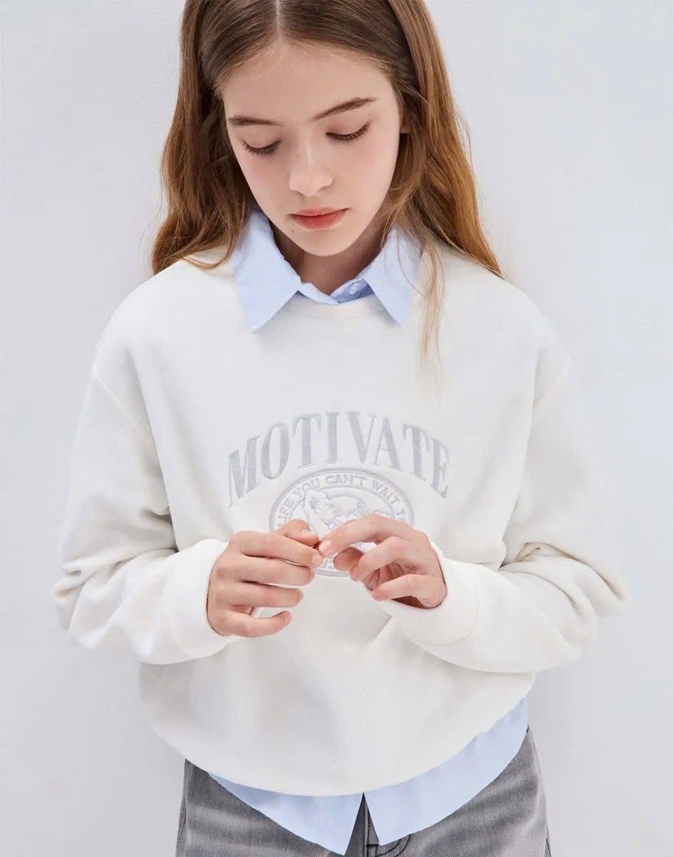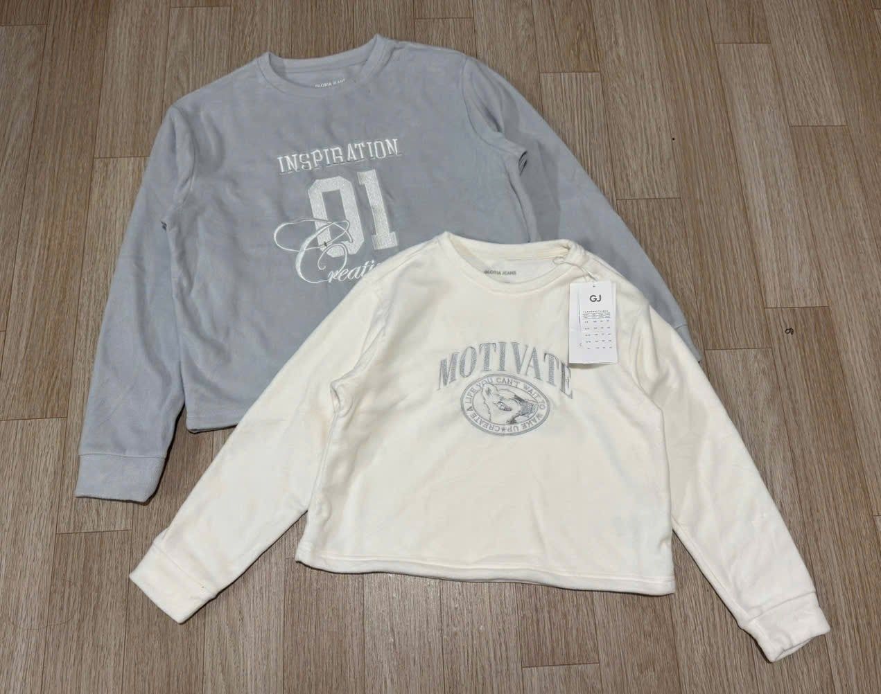 ABG29 - Áo nỉ băng lông GGJJ nhẹ ấm 2 màu trắng/ghi cho bé gái size 6-14y
