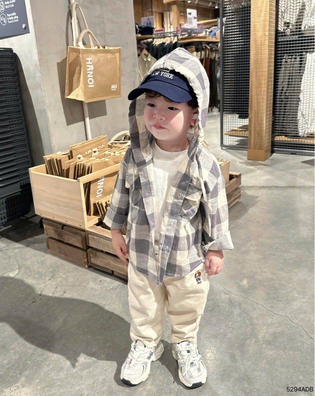 🍭 Thiết kế áo sơ mi khoác có mũ phong cách, phía trước phối túi ngực, hoạ tiết kẻ ô trendy