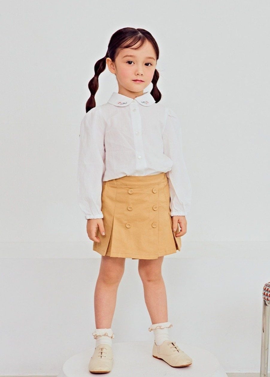 ABG41 - Áo sơ mi thô đũi Toto Heros trắng cổ sen thêu hoa hồng size 110 - 150