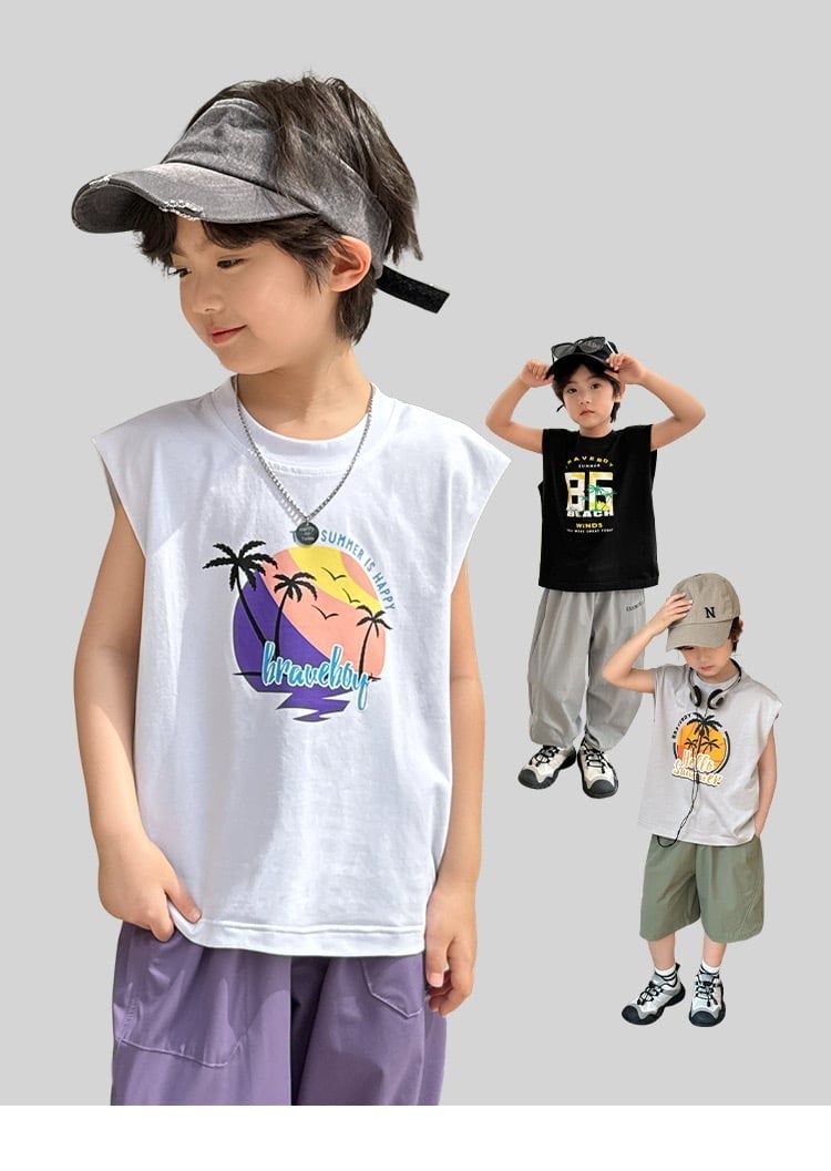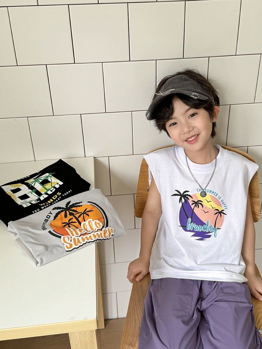 ABT45 - Áo thun sát nách hoạ tiết cây dừa nhiều màu bé trai size 110-170