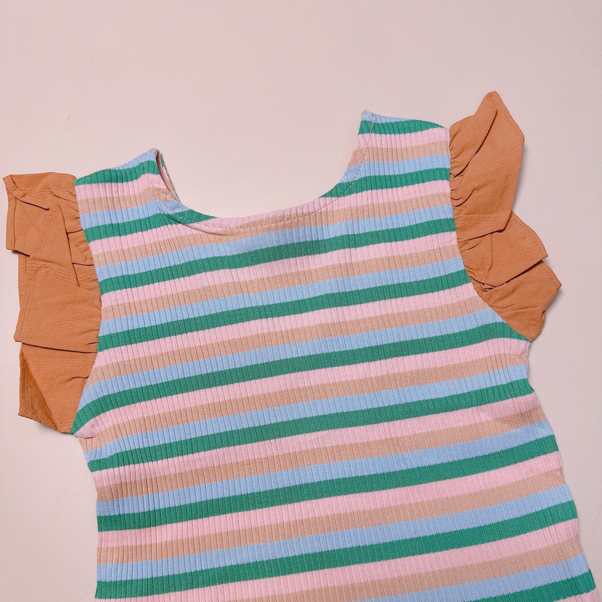 ABG36 - Áo thun tăm MM kẻ sắc màu tay cánh tiên bé gái size 90-120