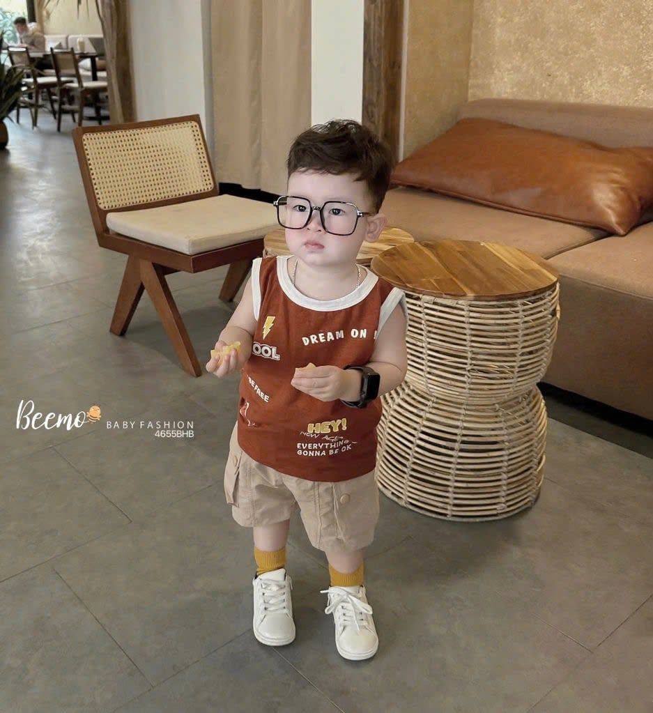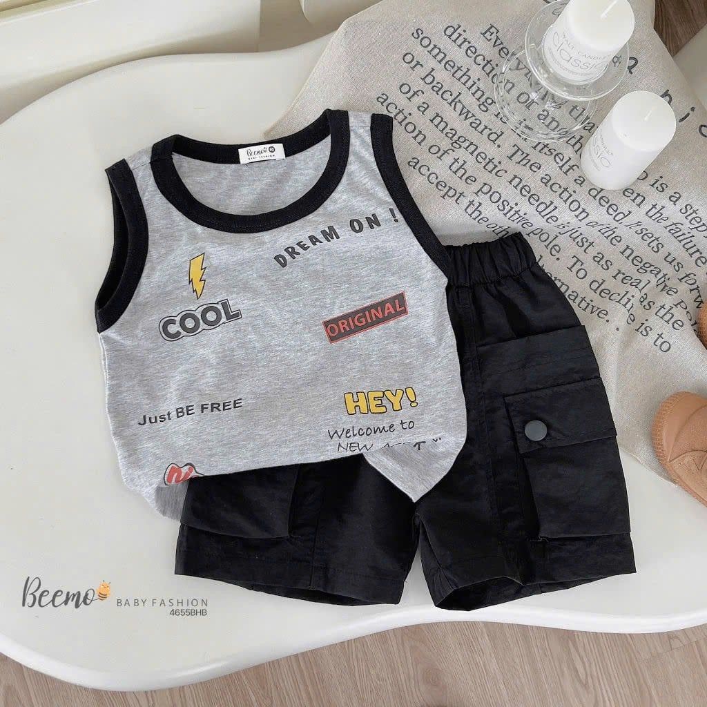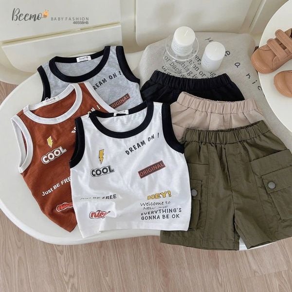 BBT34 - Bộ Beemo áo cotton sát nách + quần kaki bé trai size 80-130 (form to)