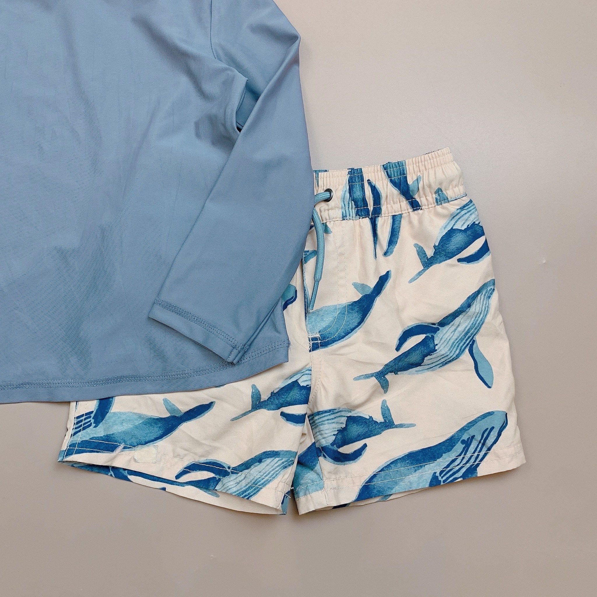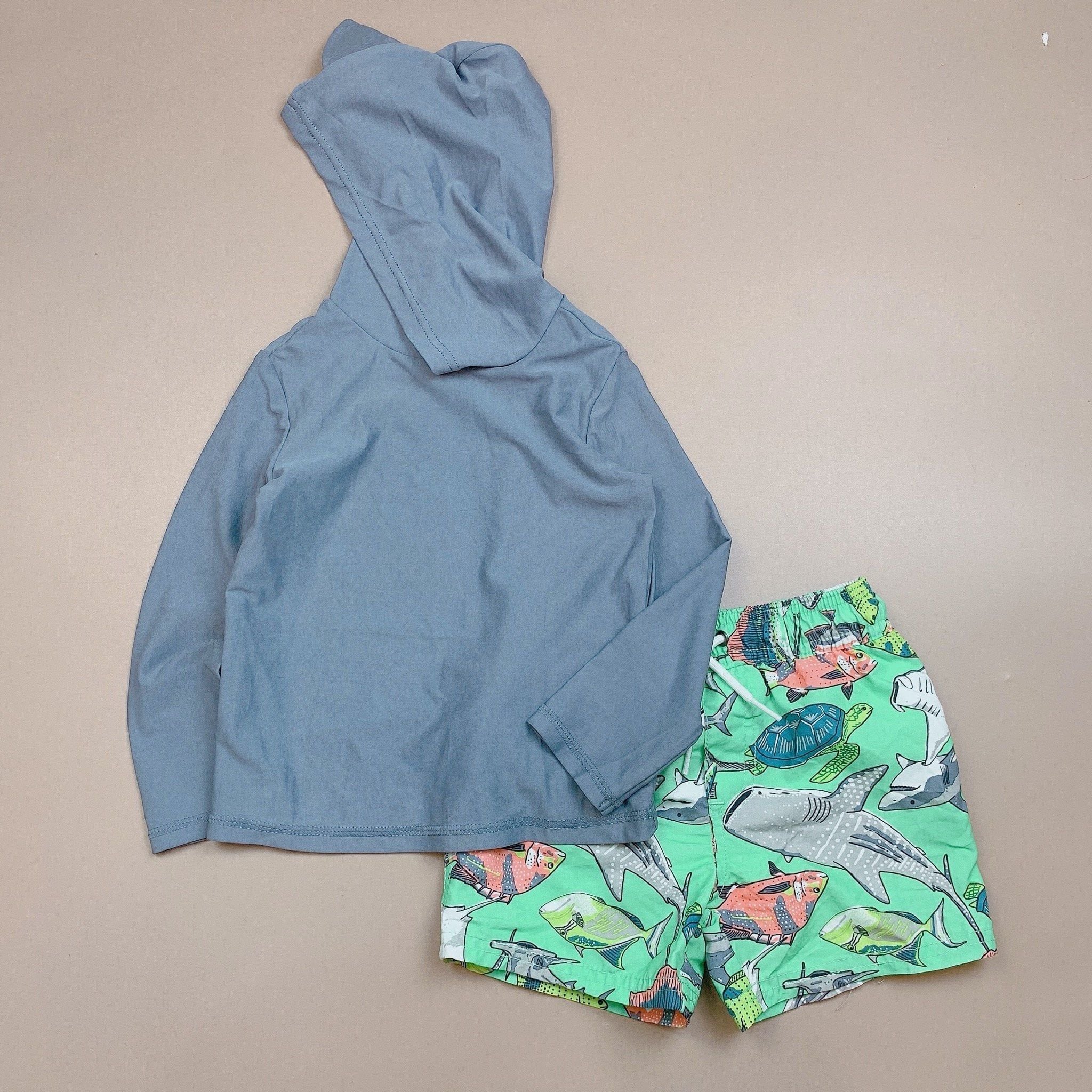 DB00057 - Bộ bơiáo dài tay mũ chóp màu ghi trơn - 2 màu quần size 9m - 5y