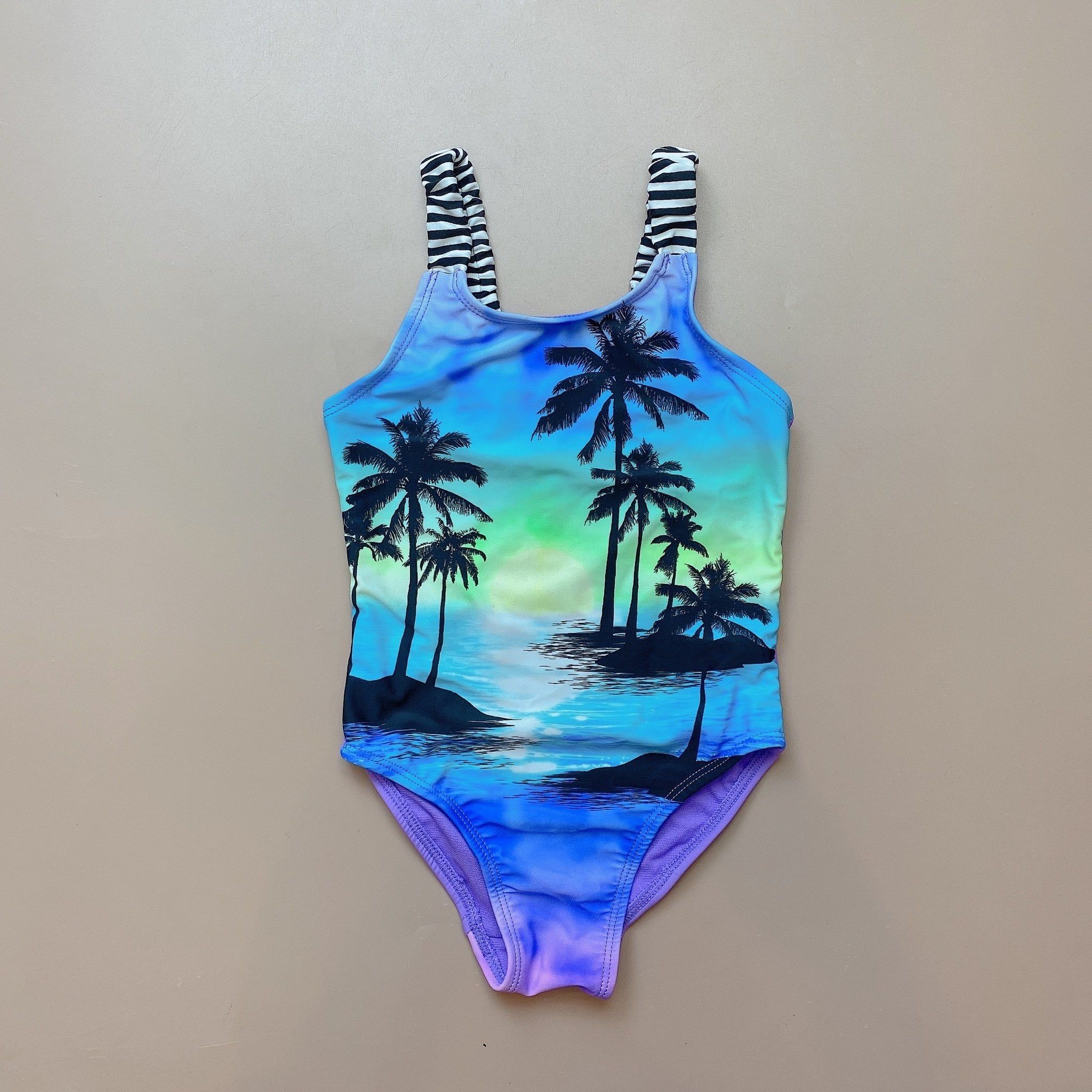 DB00027 - Bộ bơi liền hình cây dừa quai kẻ sọc trắng đen size 5 - 16y
