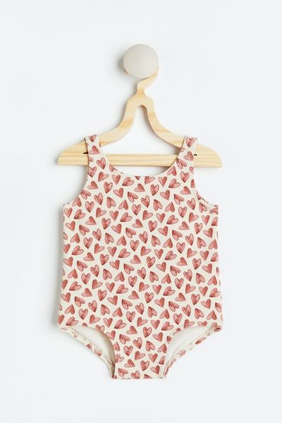 DB00021 - Bộ bơi liền màu kem hình tim nâu đỏ size 18m - 3y