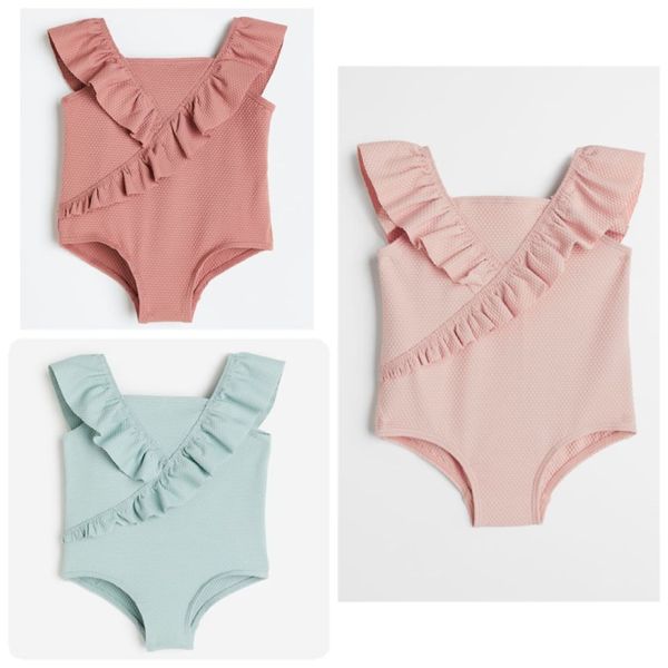 DB00017 - Bộ bơi liền tổ ong bèo vạt 3 màu hồng nhạt / mint / hồng đất size 6m - 4y