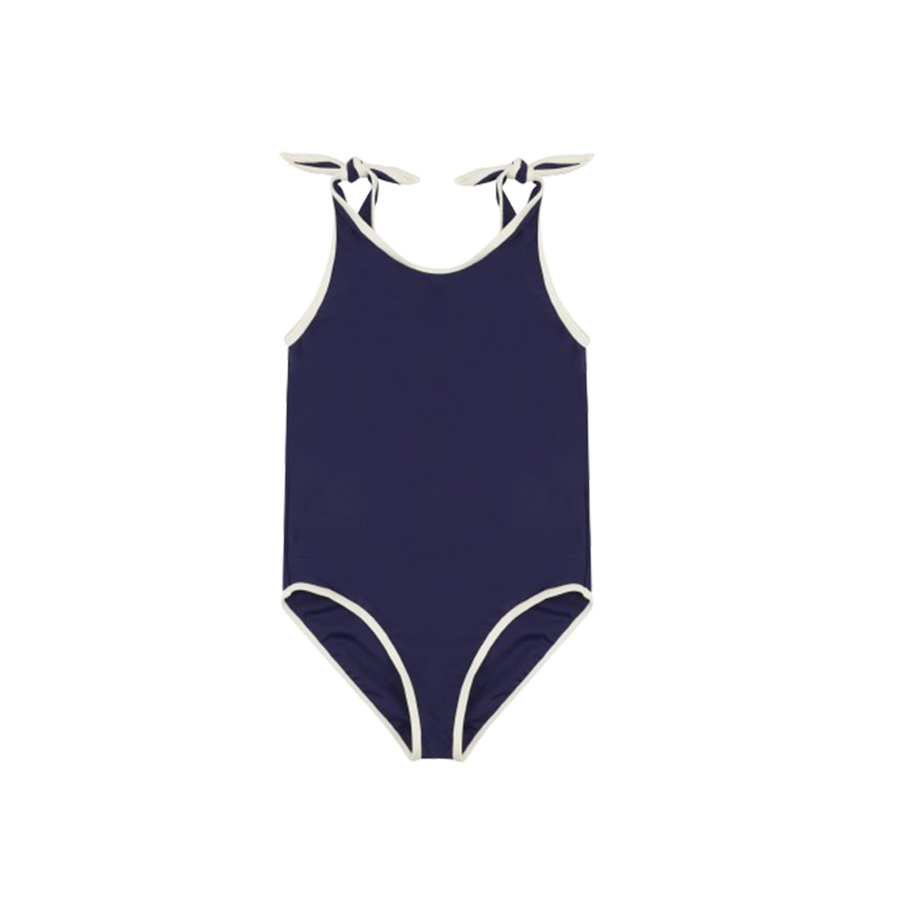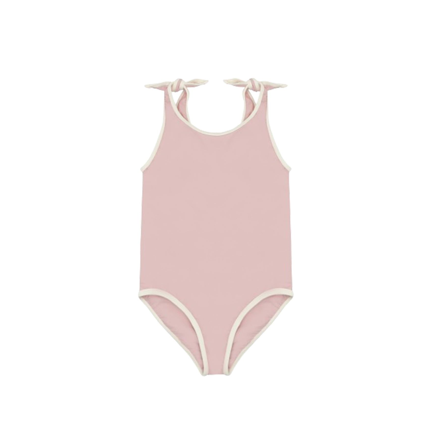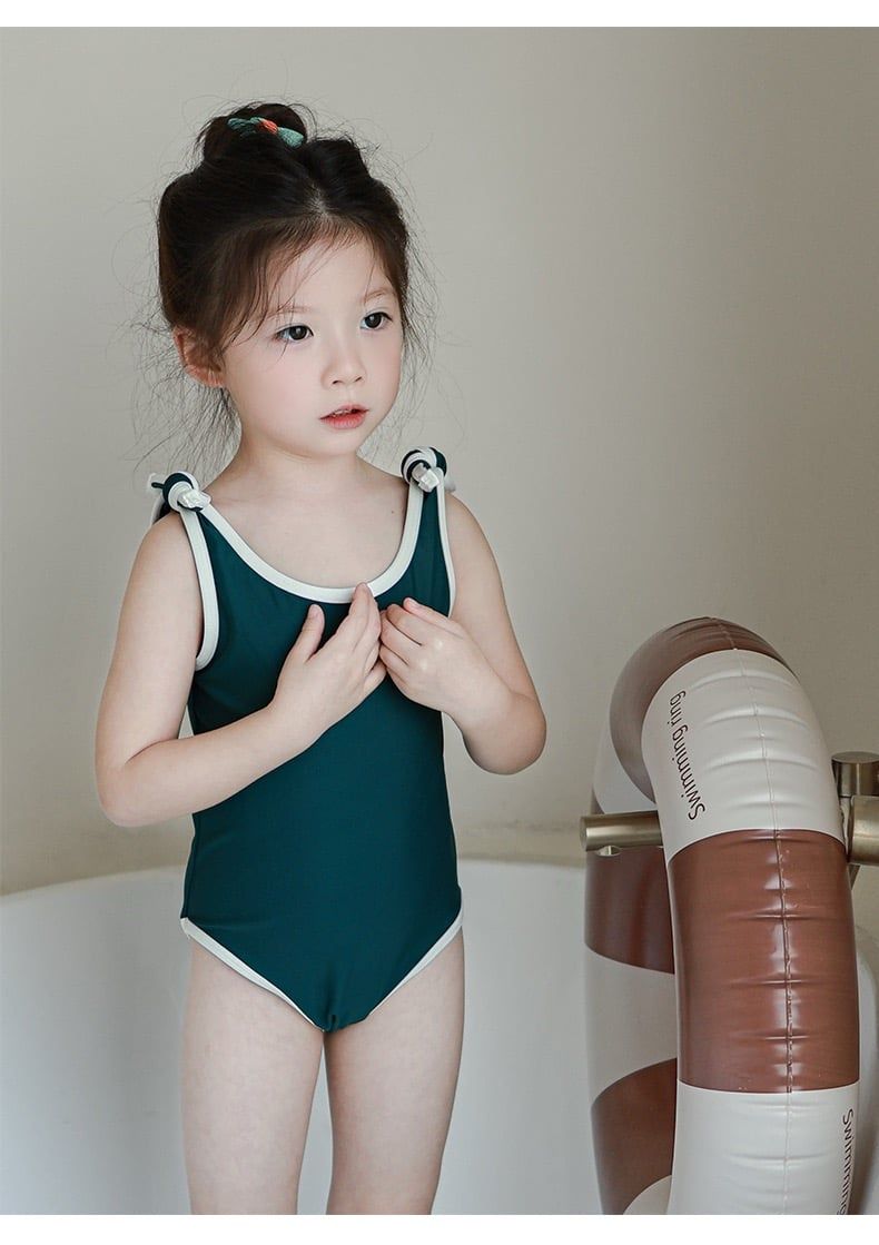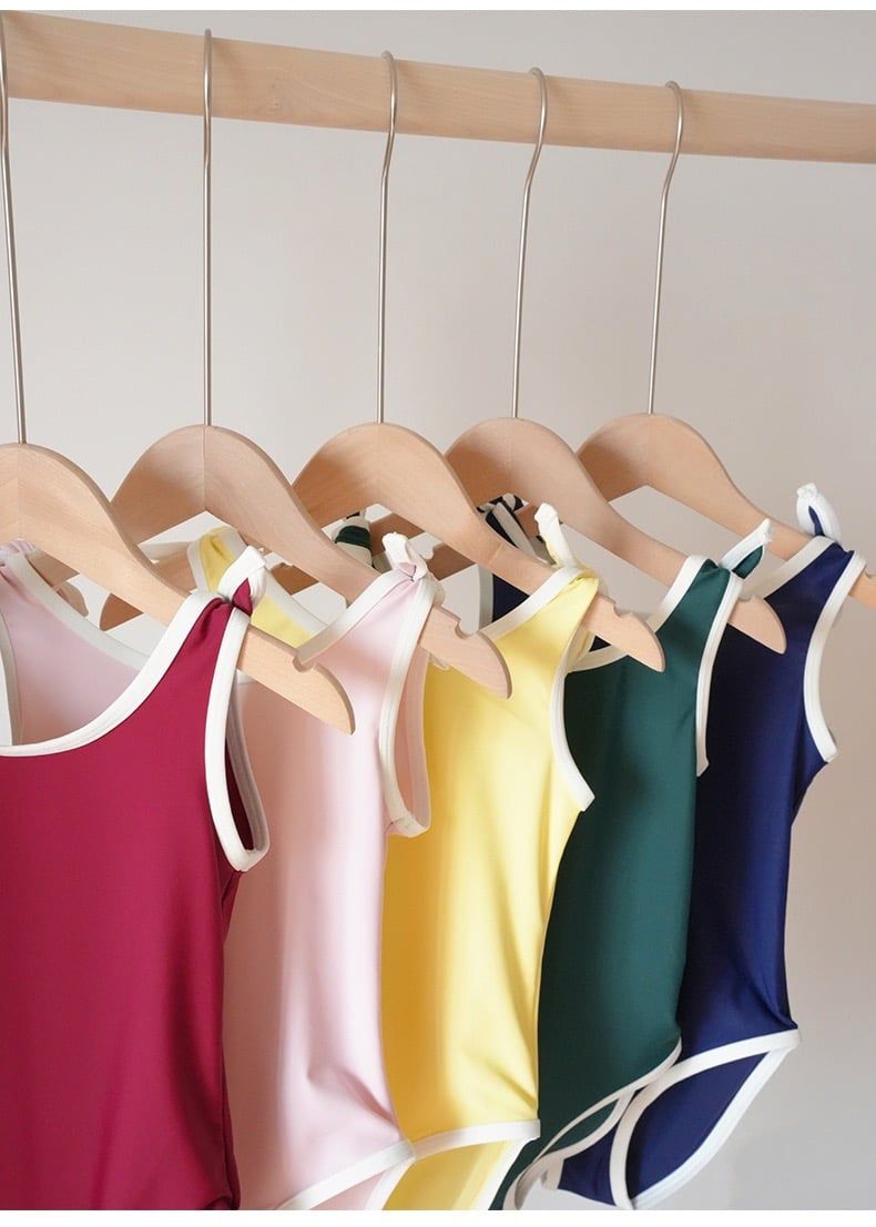 DB00016 - Bộ bơi liền thân kèm mũ trơn màu viền trắng nhiều màu bé gái size 80-130