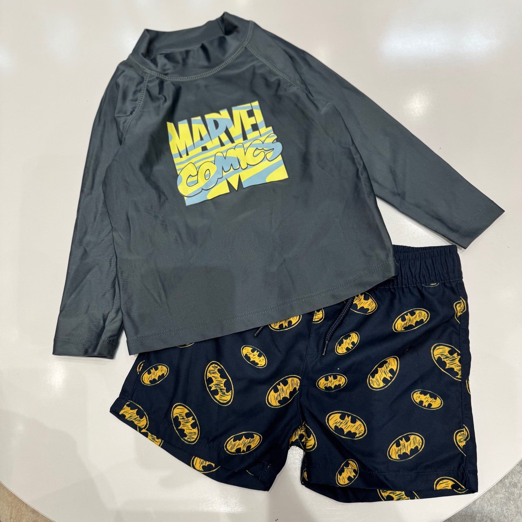 DB00005 - Bộ bơi rời Marvel Comics áo dài tay ghi - quần navy batman size 2 - 8y