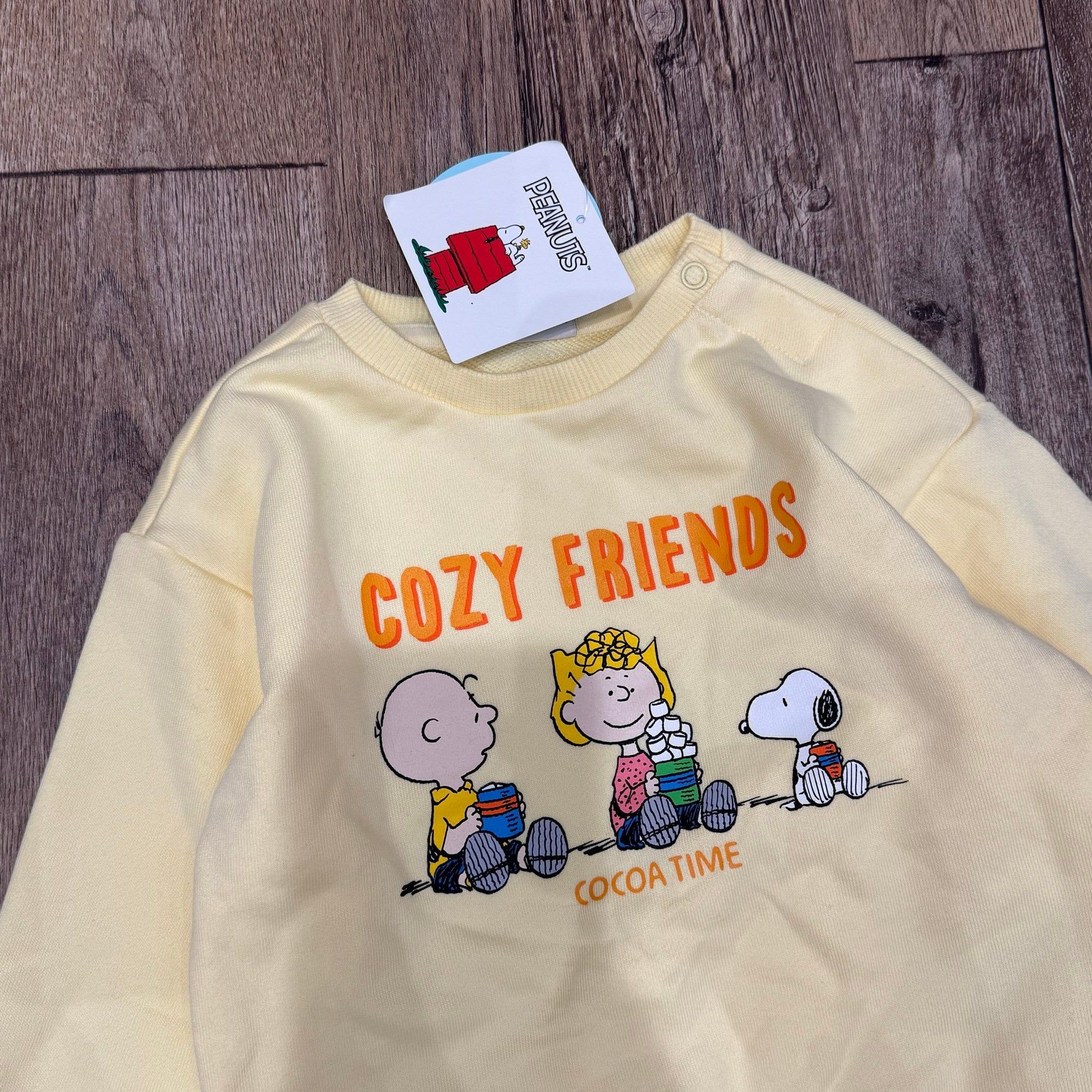 Bộ nỉ da cá Topten xuất Hàn dư xịn, chất đẹp cực kỳ mẹ nha. Chất nỉ da cá độ dày vừa phải, rất dễ mặc, phù hợp với nhiều kiểu thời tiết. Hoạ tiết snoopy unisex mặc cute lắm mẹ nha.