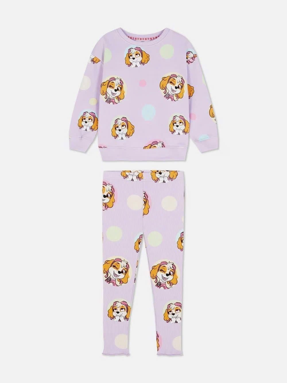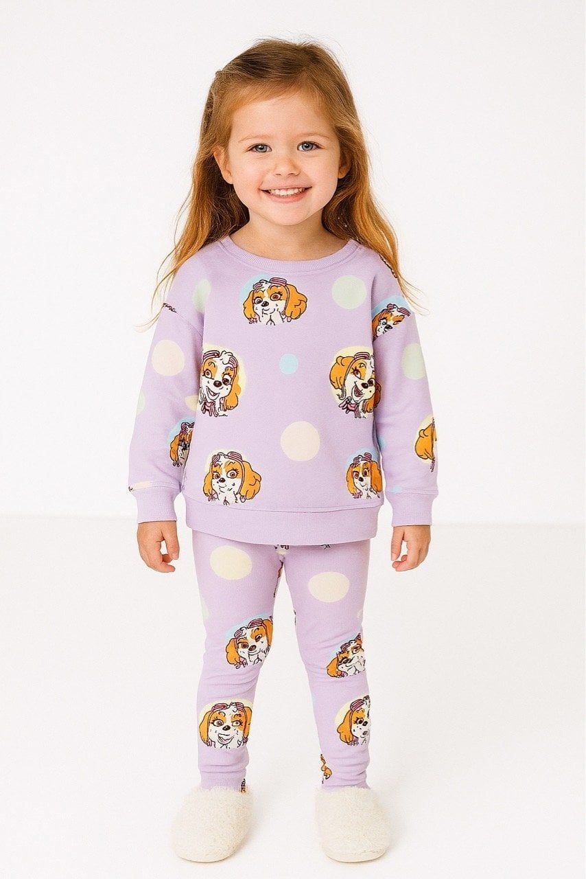 BBG15 - Bộ áo nỉ bông tím Paw Patrol chấm bi - quần thun tăm size 2 - 8y