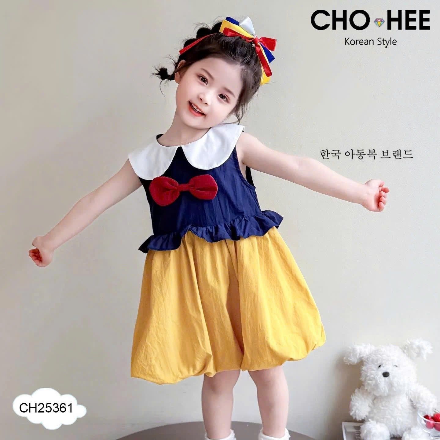 CH25361 - Váy bạch tuyết đính nơ đỏ cho bé gái size 2-11y