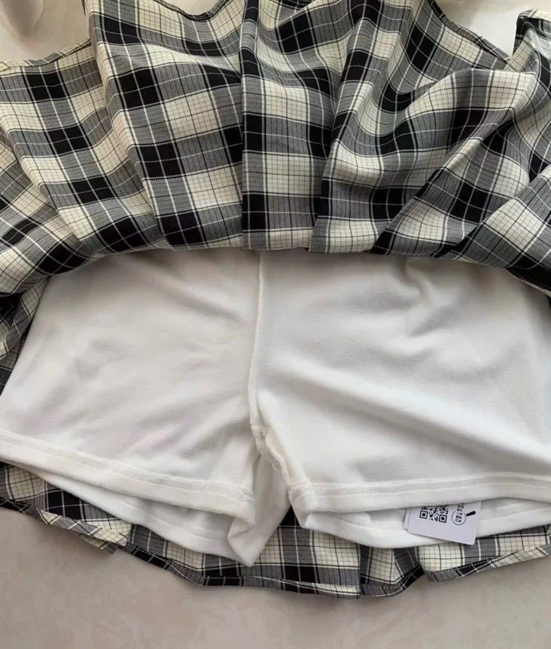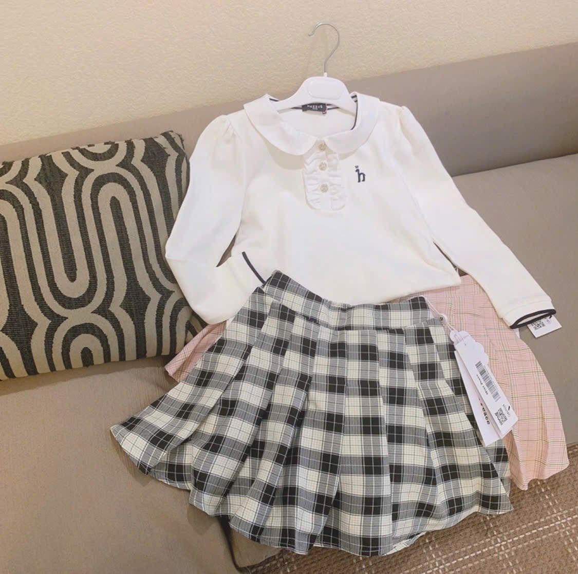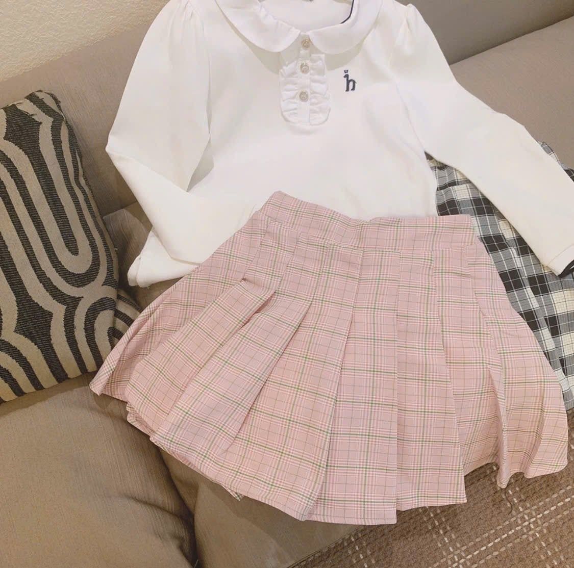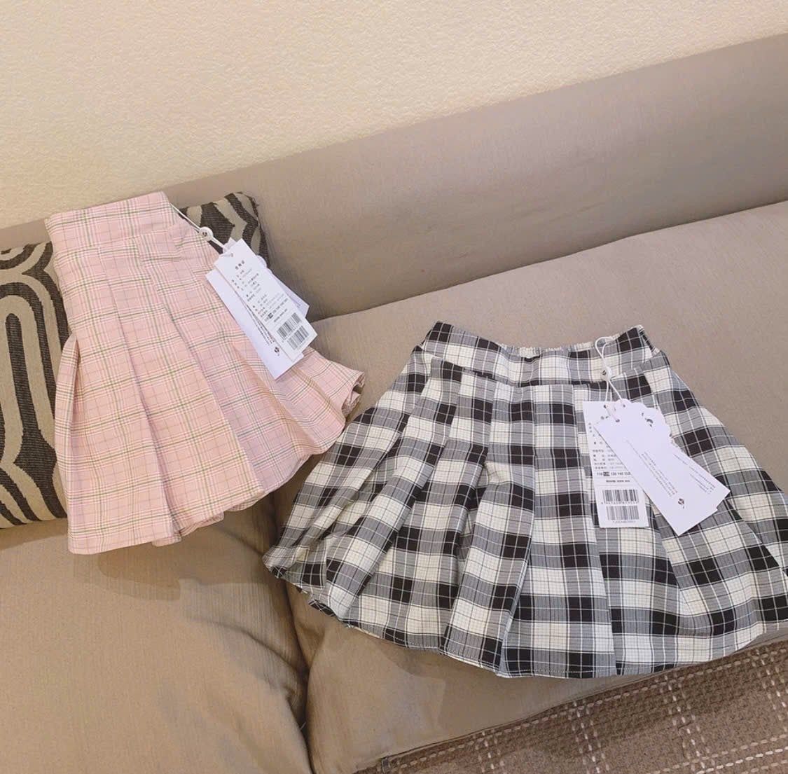 CVAY15 - Chân váy vải thô Mini Peace kẻ caro liền quần nỉ bé gái size 110-160