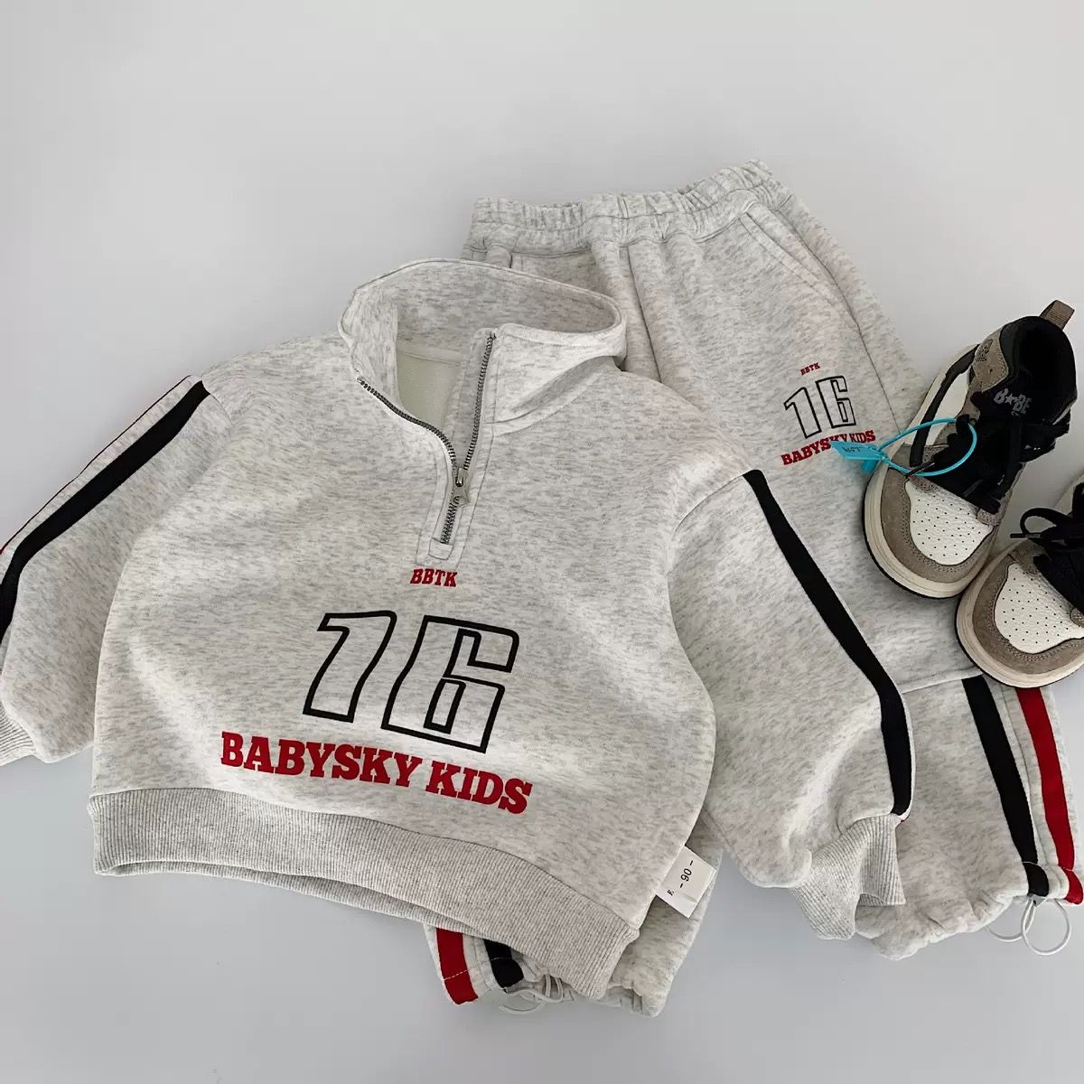 H0619 - Bộ nỉ lót nỉ đại Hàn Maibaokids 2 màu ghi/navy cho bé size 90-140