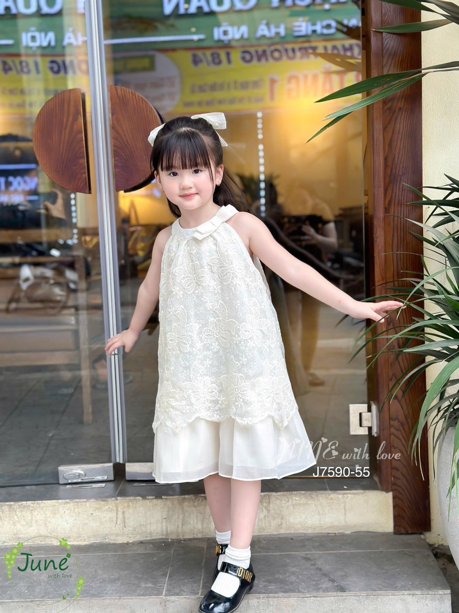J7590 - Váy June With Love cổ yếm vải ren có lót cho bé size 1-10y