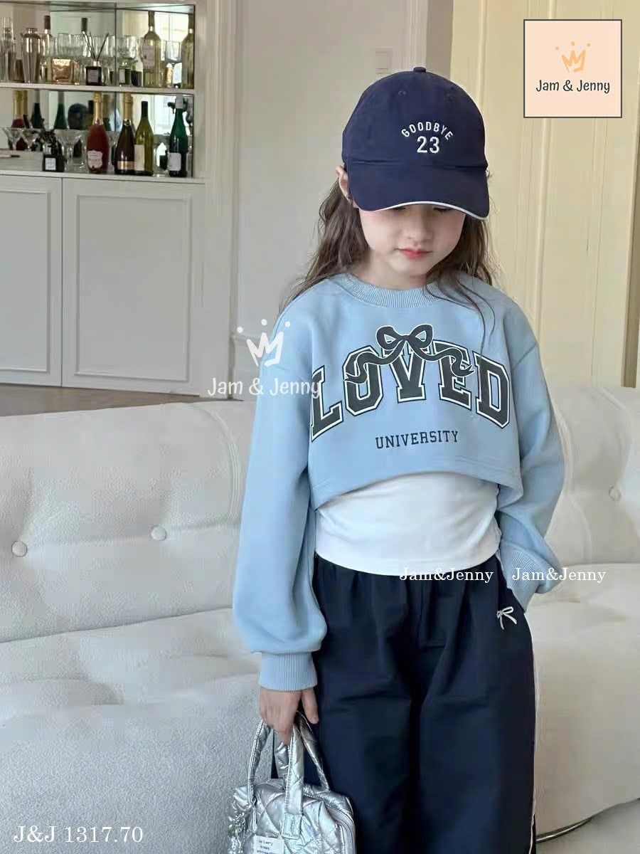 JJ 1317 - Set 3ct Jam & Jenny áo xanh in chữ LOVE bé gái size 2-12y
