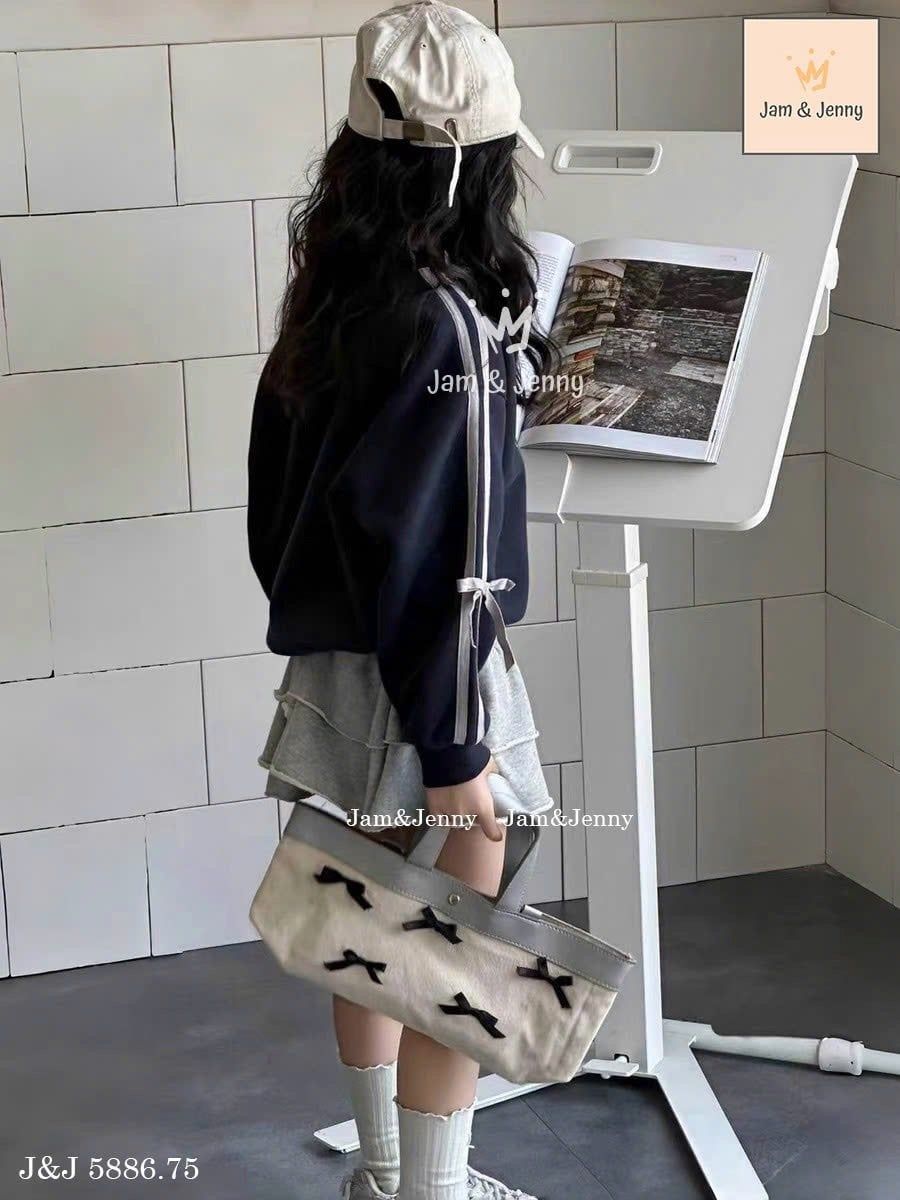JJ 5886 - Set Jam & Jenny áo navy nơ + chân váy ghi bé gái size 2-12y