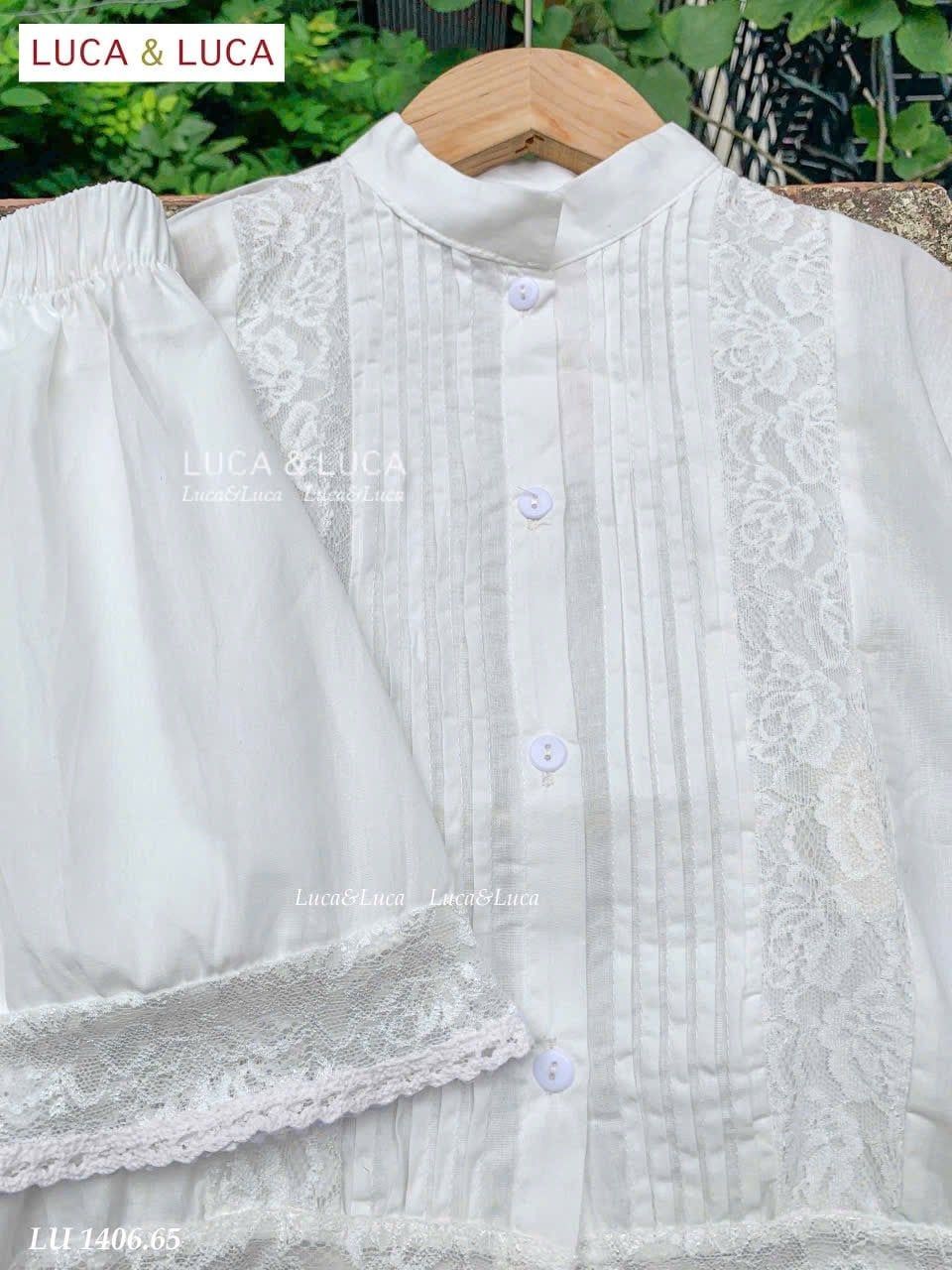 Lu 1406 - Bộ Luca áo + chân váy trắng phối ren bé gái size 2-12y