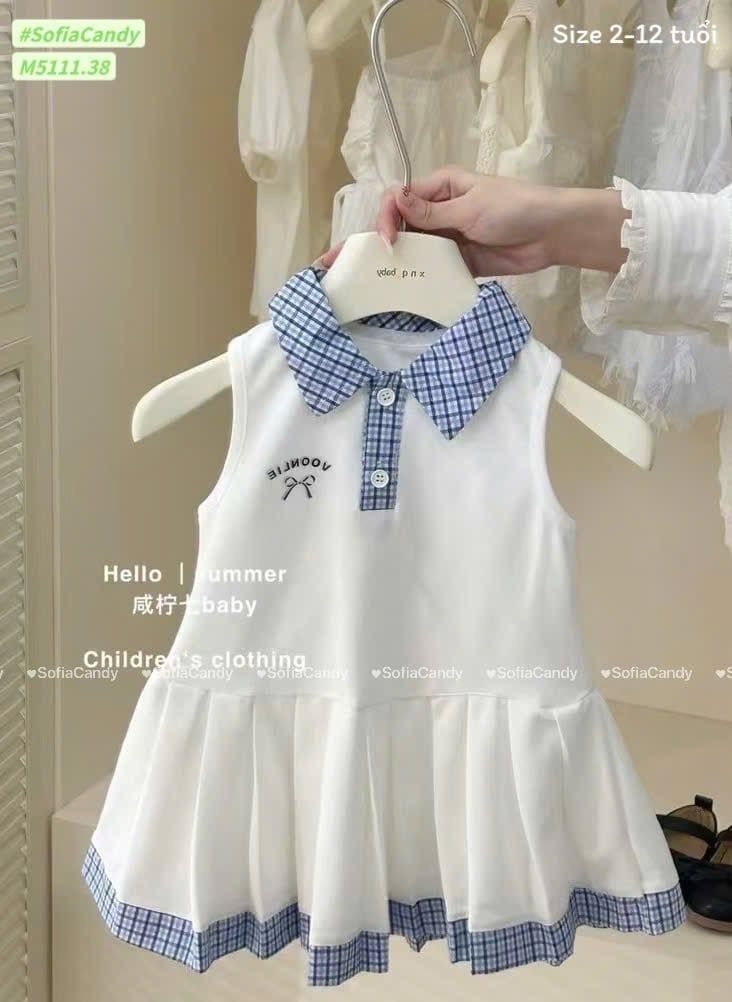 M5111 - Váy polo Mia kids phối cổ kẻ 2 màu size 2 - 12y