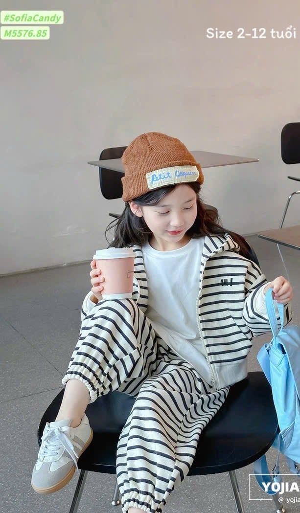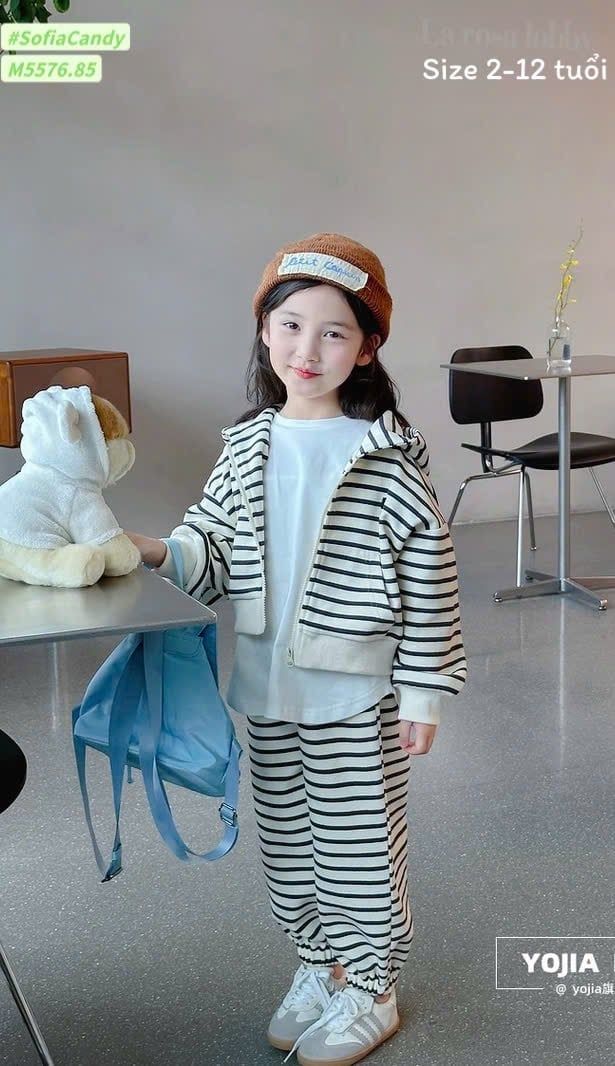 M5576 - Set bộ 2ct nỉ da cá Mia Kids kẻ trắng đen size 2 - 12y