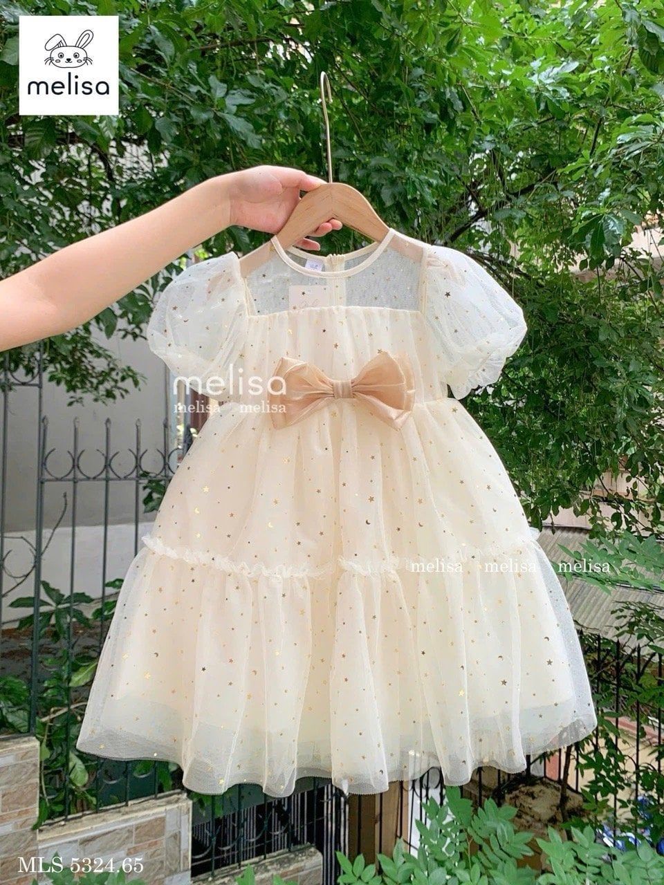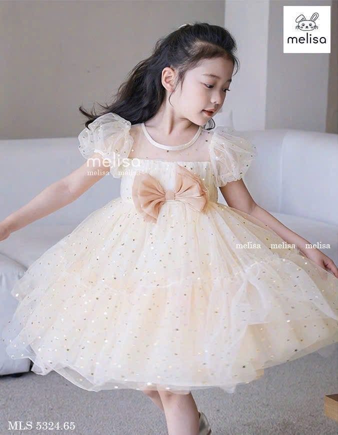 MLS 5324 - Váy công chúa Melisa màu be sao đính nơ bé gái size 2-12y