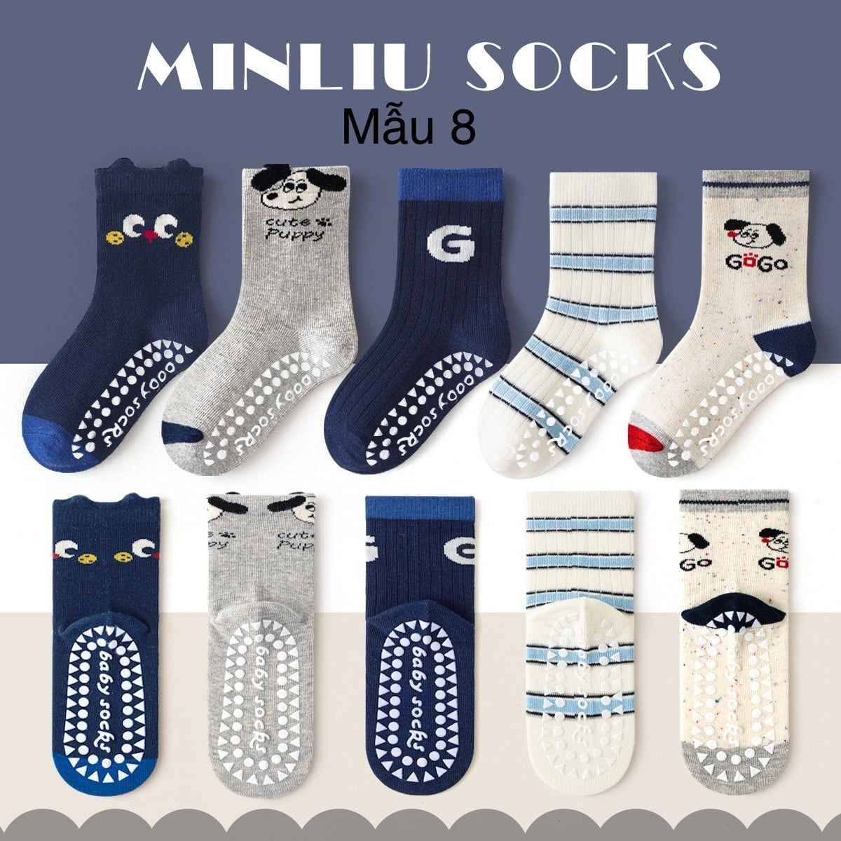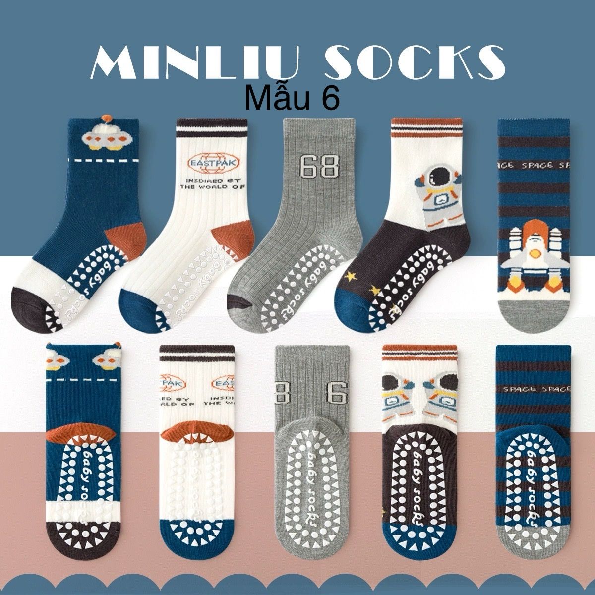 Set 5 tất Minliu Kid Sock cho bé, tất co giãn rất tốt, các mẹ có thể lấy theo bảng size sau ạ:
