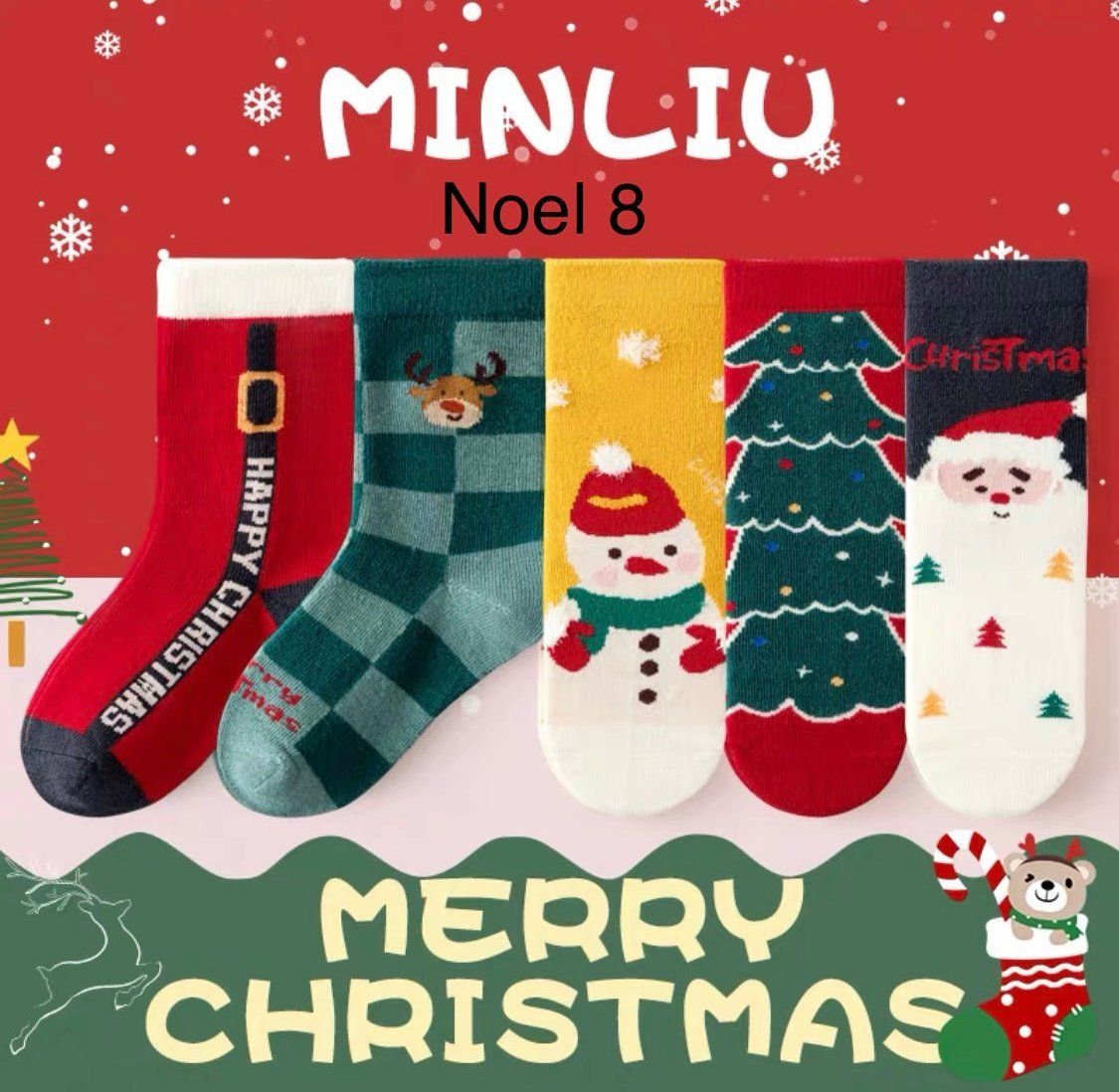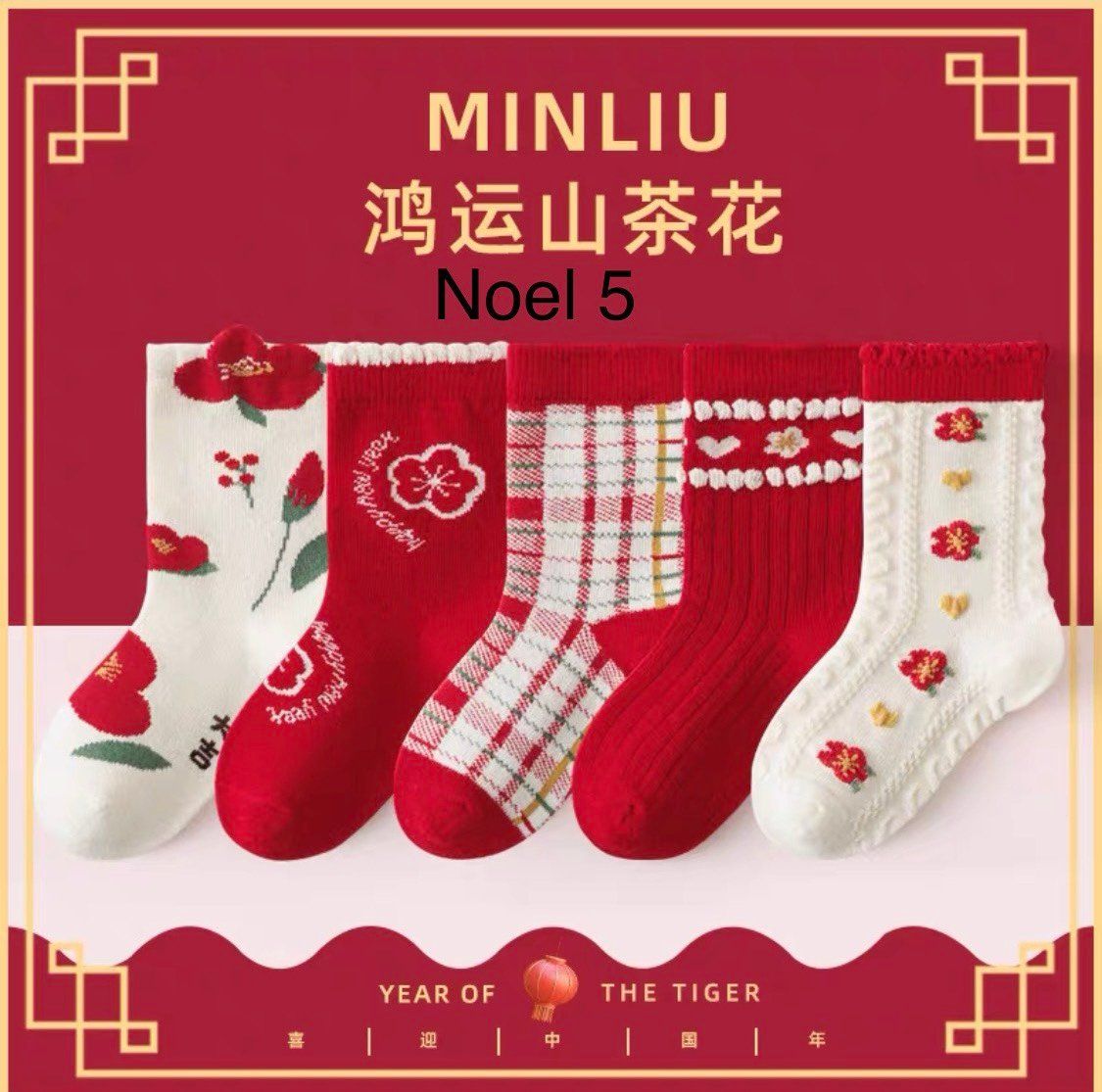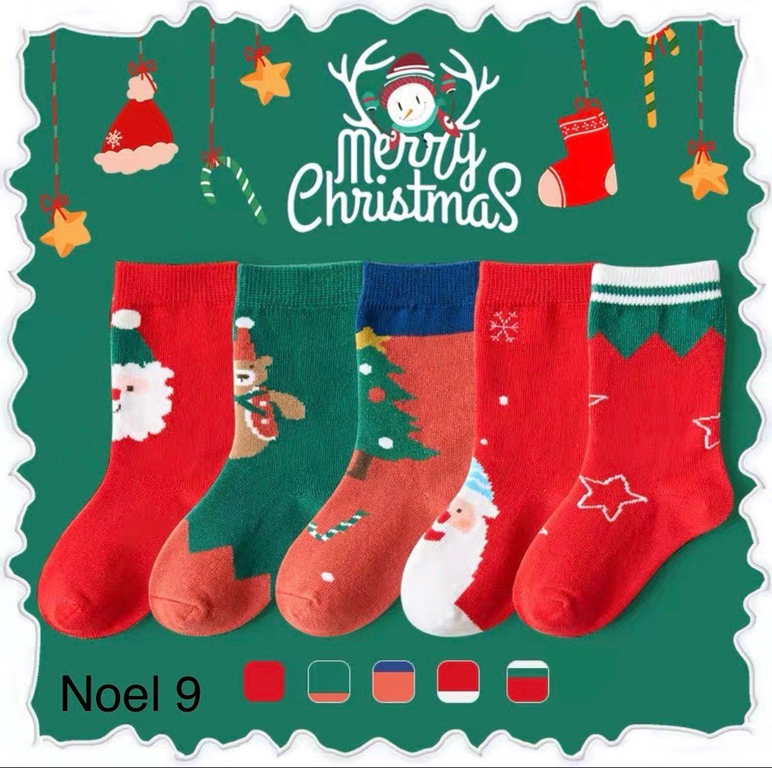 Set 5 tất chủ đề năm mới, noel cho bé, với gam màu đỏ, xanh, trắng đặc trưng. Mã này các mẹ làm quà tặng noel cũng rất hợp lý ạ.